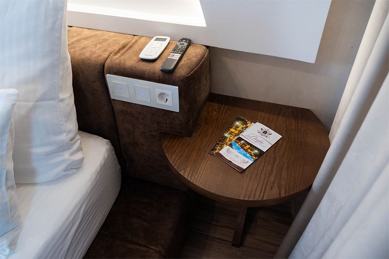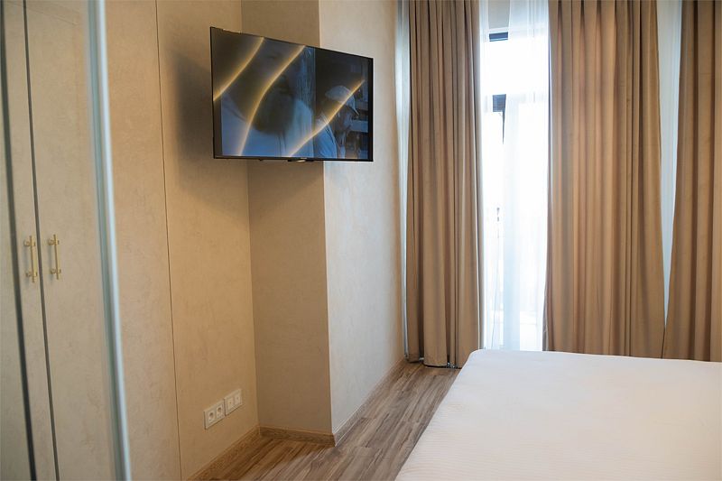 Авторский дизайн номера выполнен в изысканном современном стиле в светлых тонах и рассчитан на комфортное проживание двух гостей. Здесь находится всё нужное для прекрасного отдыха. Помимо широкой двуспальной кровати с ортопедическим матрасом и другой современной мебели, к услугам гостей SMART-TV, внутренний телефон и бесплатный Wi-Fi. Туалетная комната оснащена душем, феном, высококачественным текстилем.