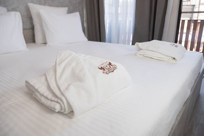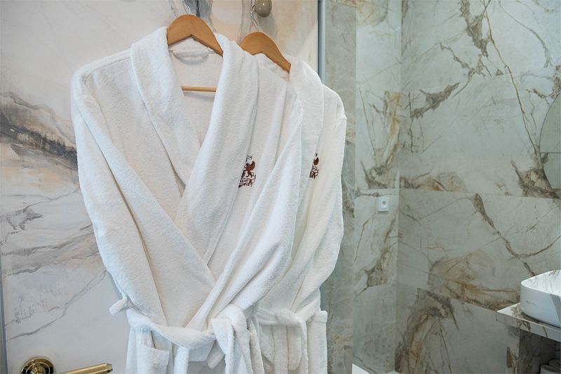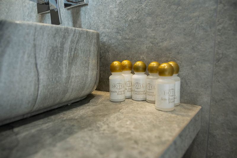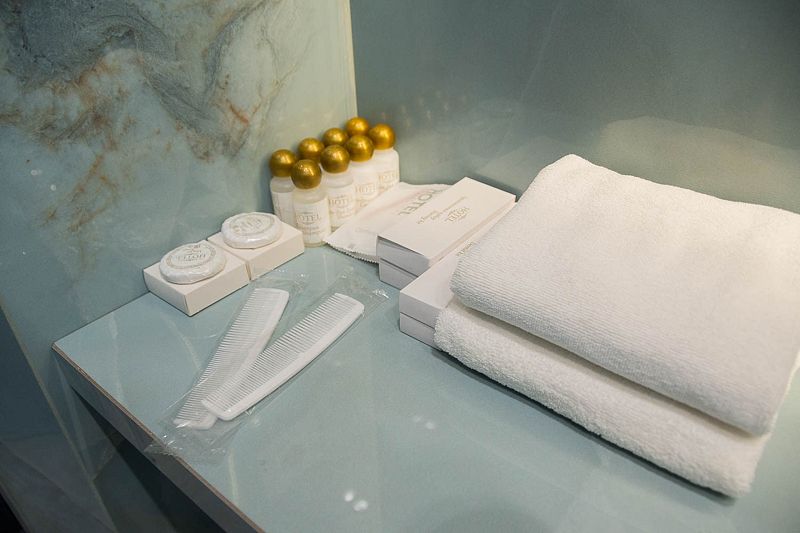 Ванная комната: ванна, банные полотенца, банные принадлежности (мыло, гель для душа, лосьон для тела, шампунь для волос, кондиционер для волос, шапочка для душа, расческа), туалетные средства (зубной набор — зубная щетка + паста, бритвенный набор — станок одноразовый + крем для бритья), ватные палочки и диски, пляжные полотенца, раковина, санузел, биде, тапочки, халаты, фен. Смена полотенец происходит каждый день, смена постельного белья 1 раз в 3 суток.