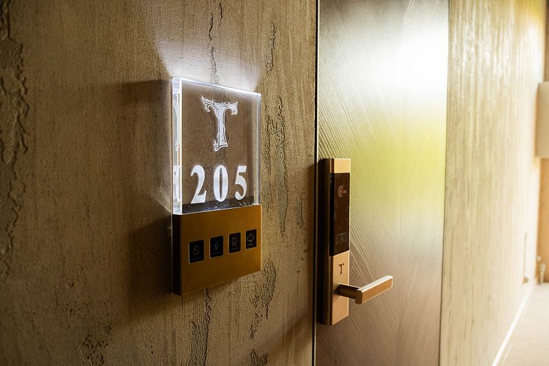 Номер 205 с Авторским дизайном категории Джуниор Сьют располагаются на втором этаже в Главном корпусе №1. Корпус реновирован в июне 2024 года, здесь же располагается Ресепшн отеля и кафе, где проходят завтраки и обеды.