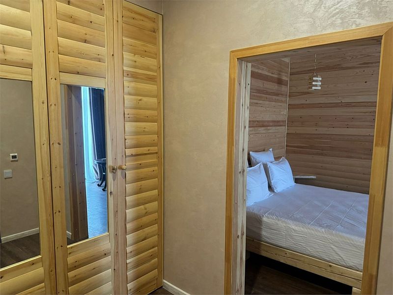 В гостевой зоне расположен большой угловой диван, комод, цифровое ТВ, стол, сейф, мини-холодильник; в спальной зоне — широкая двуспальная кровать «KING SIZE» превосходного качества, комод, телевизор, в каждой комнате собственная сплит-система, в прихожей — багажная тумба, шкаф-купе, вешалка для верхней одежды; так же имеется система отопления, Wi-Fi, внутренний телефон. Для хранения личных вещей предназначен вместительный шкаф и тумбочки.