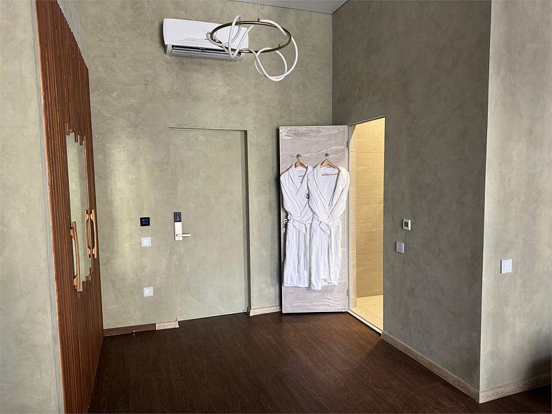 Двухкомнатный номер имеет площадь 61,6 кв.м. состоит из двух комнат (гостиной и спальни), просторной прихожей и отлично оборудованного санузла. Номер выполнен в бежевых пастельных тонах, из гостевой зоны с панорамными окнами открывается великолепный вид на бассейн и территорию комплекса.
