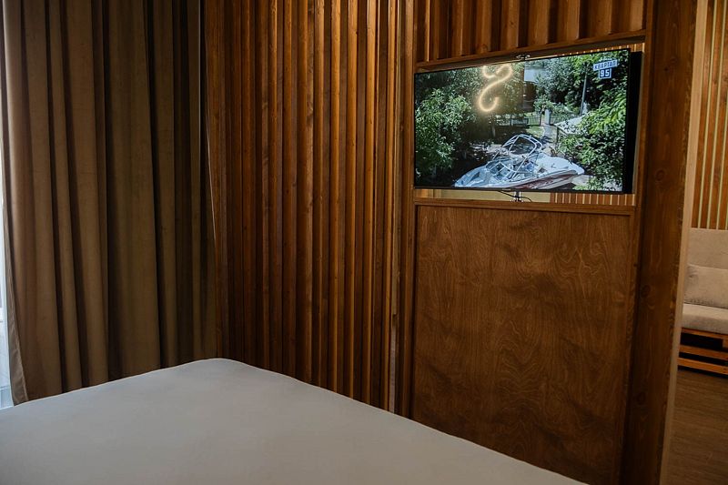 Номер 206 с Авторским дизайном категории Джуниор Сьют располагаются на втором этаже в Главном корпусе №1. Корпус реновирован в июне 2024 года, здесь же располагается Ресепшн отеля и кафе, где проходят завтраки и обеды.