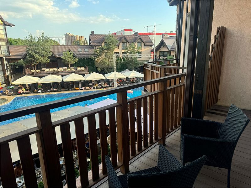 Номер с видом на бассейн располагается в тихом корпусе №2.