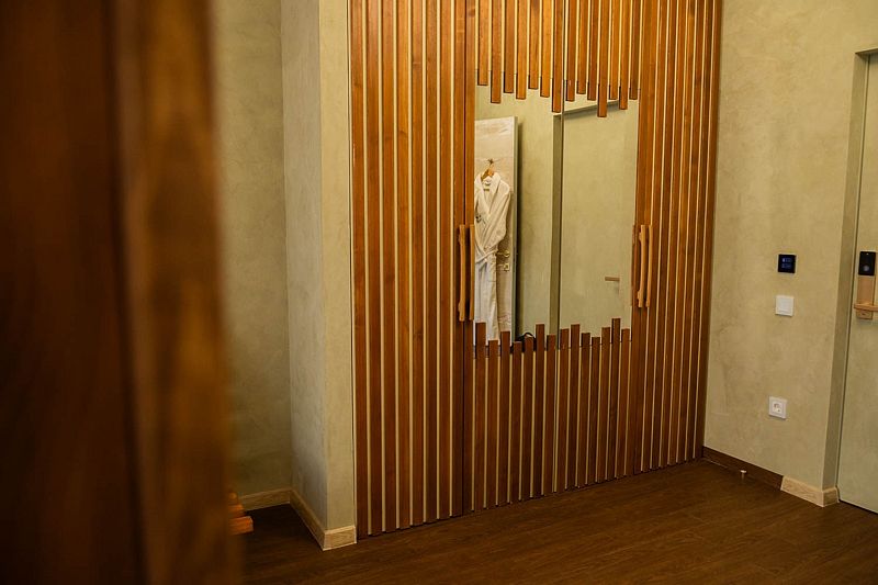 Номер 207 с Авторским дизайном категории Джуниор Сьют располагается на втором этаже в Главном корпусе №1. Корпус реновирован в июне 2024 года, здесь же располагается Ресепшн отеля и кафе, где проходят завтраки и обеды.