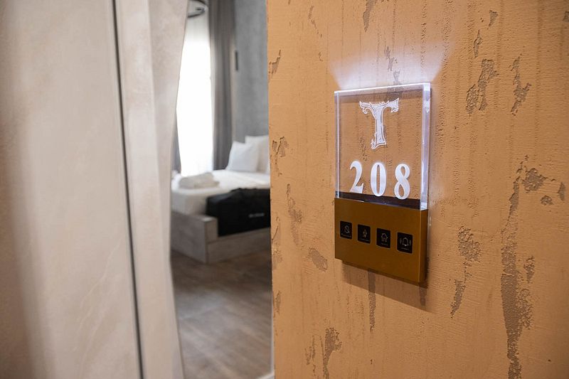Номер 208 с Авторским дизайном категории Джуниор Сьют располагаются на втором этаже в Главном корпусе №1. Корпус реновирован в июне 2024 года, здесь же располагается Ресепшн отеля и кафе, где проходят завтраки и обеды.