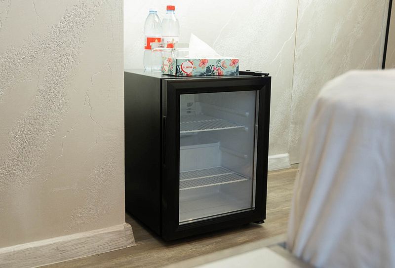 Каждый номер укомплектован питьевой водой 0,5 с газом и без, пополнение воды ежедневно, на этаже кулер с водой.