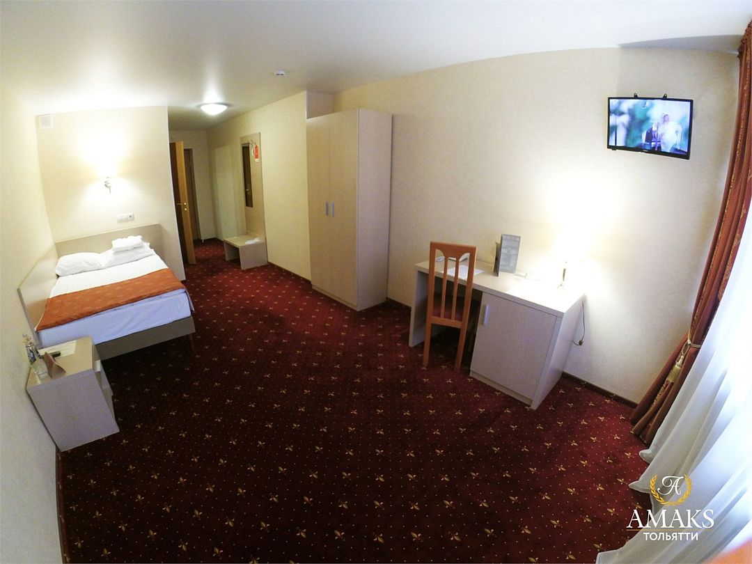 Комфортабельный однокомнатный номер в фирменном стиле сети AMAKS Hotels&Resorts, в номере: полутороспальная кровать, рабочая зона, в ванной комнате- душевая кабина.Услуги и удобства