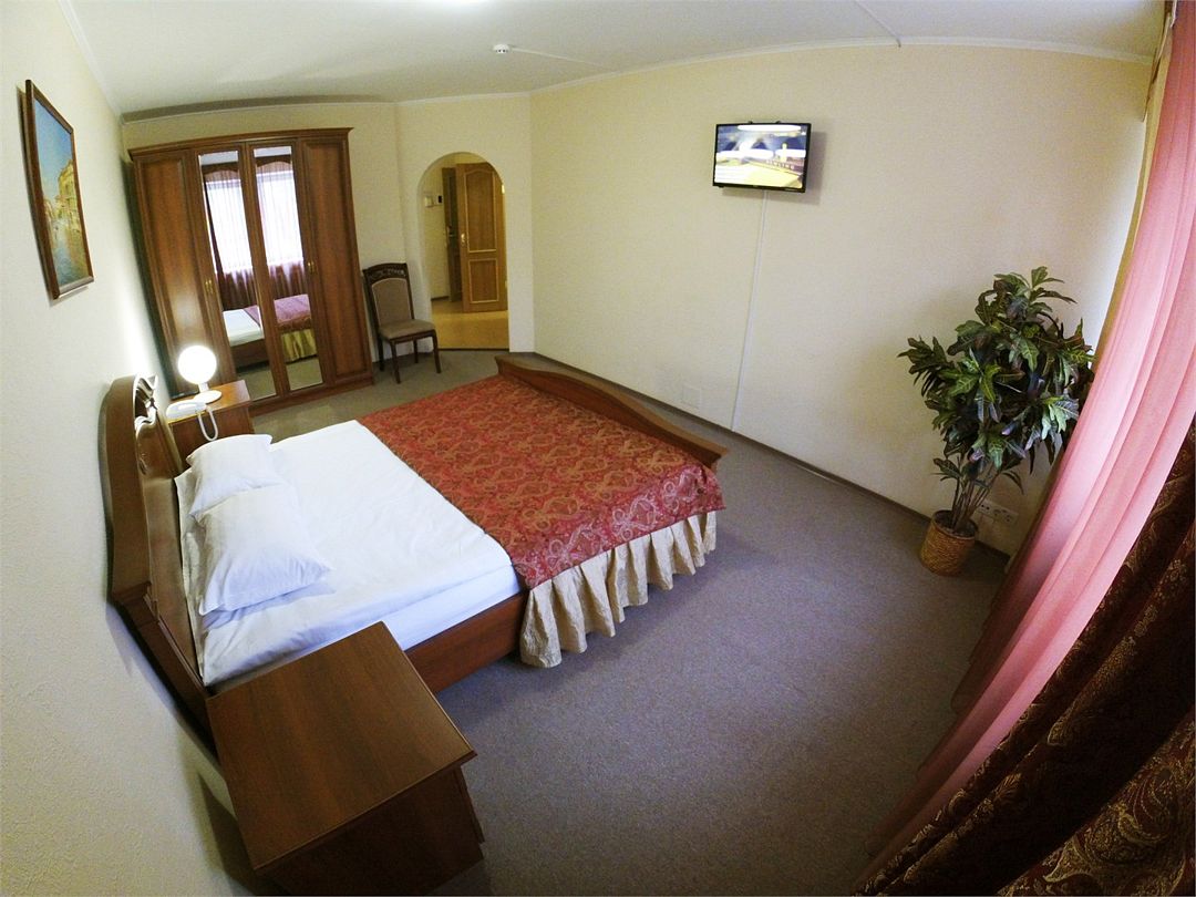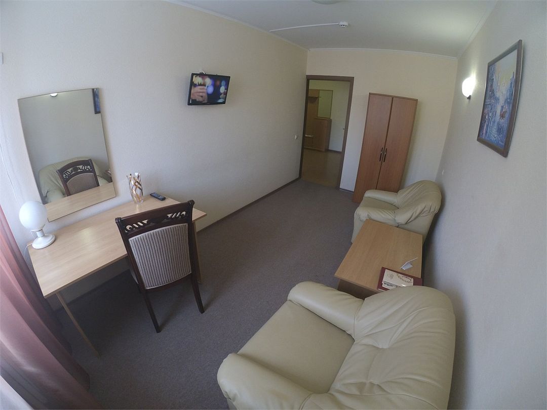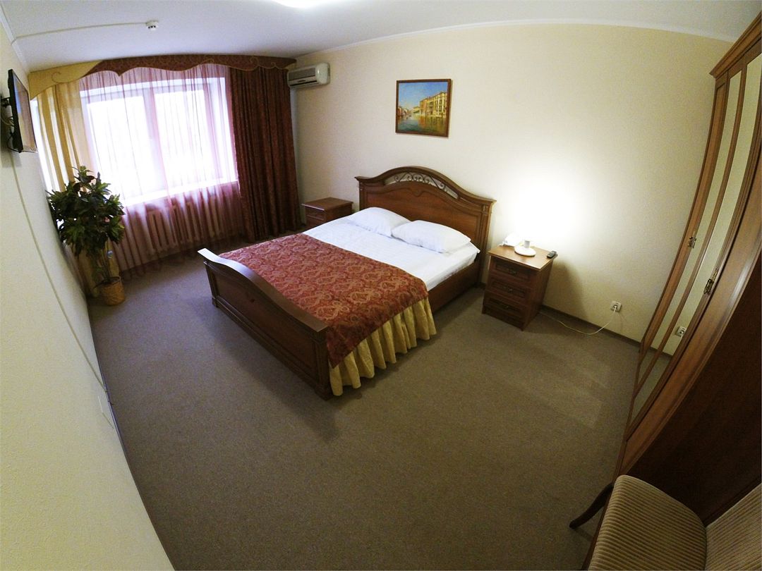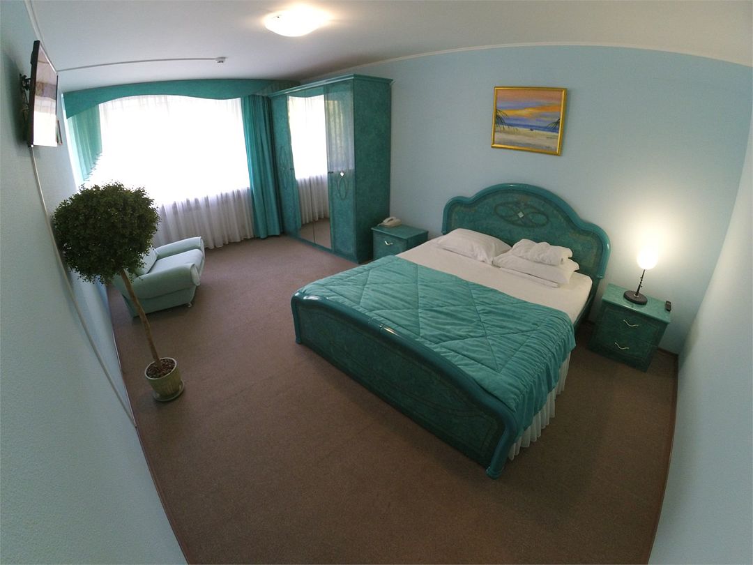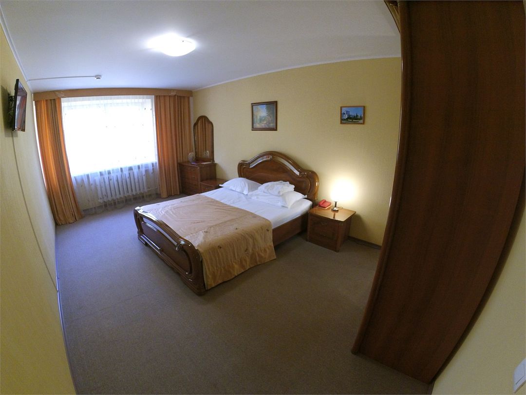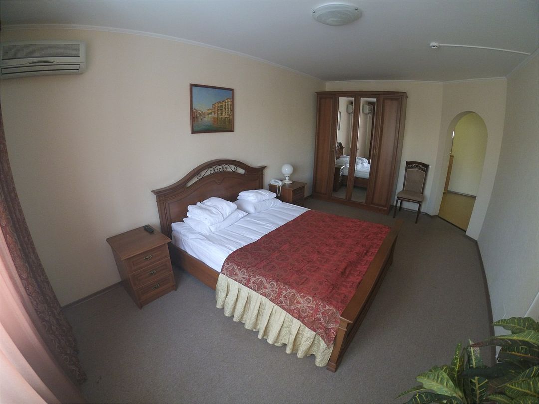Комфортабельный номер, площадью 45 кв.м., двуспальная кровать, в некоторых номерах - зона с мягкой мебелью, телевизор, кондиционер, холодильник, телефон, сейф, Wi-Fi.Услуги и удобства