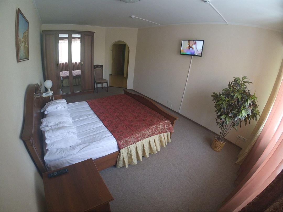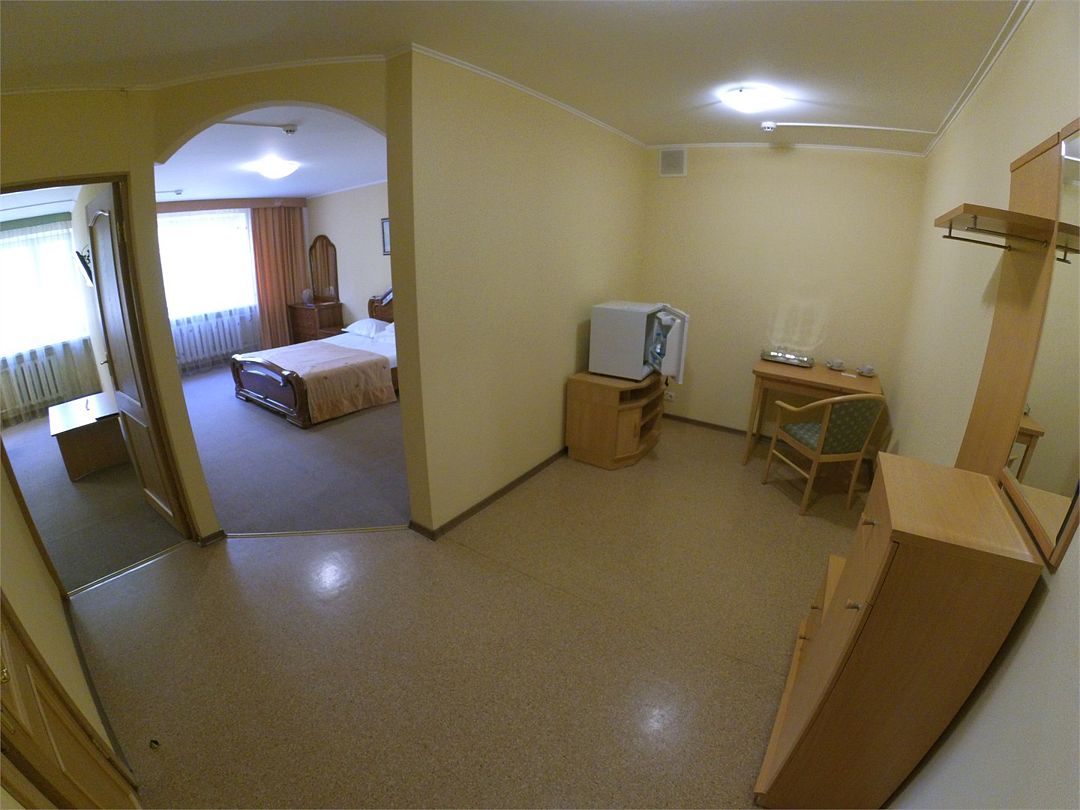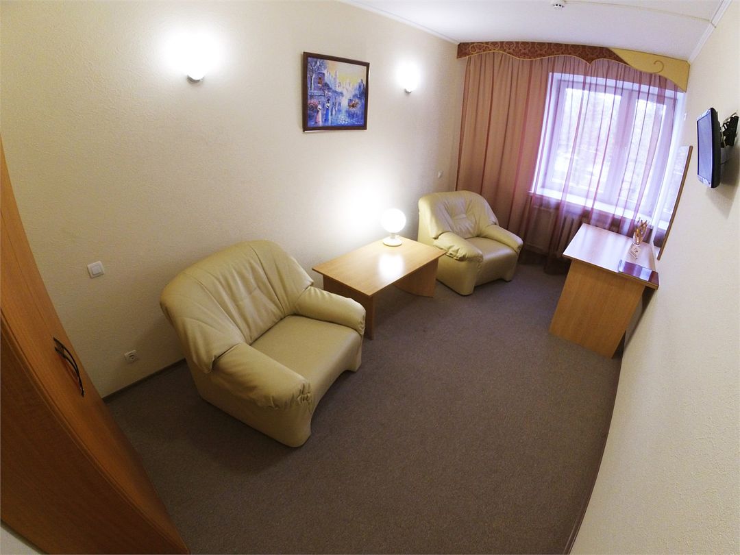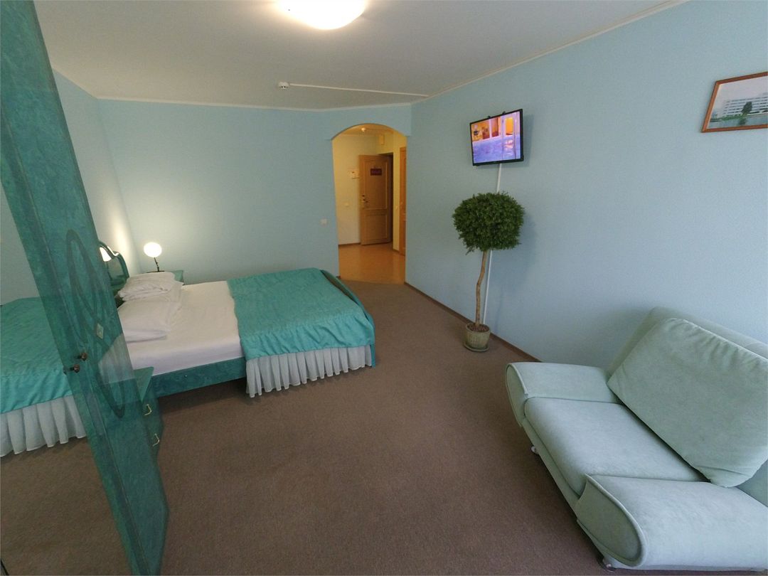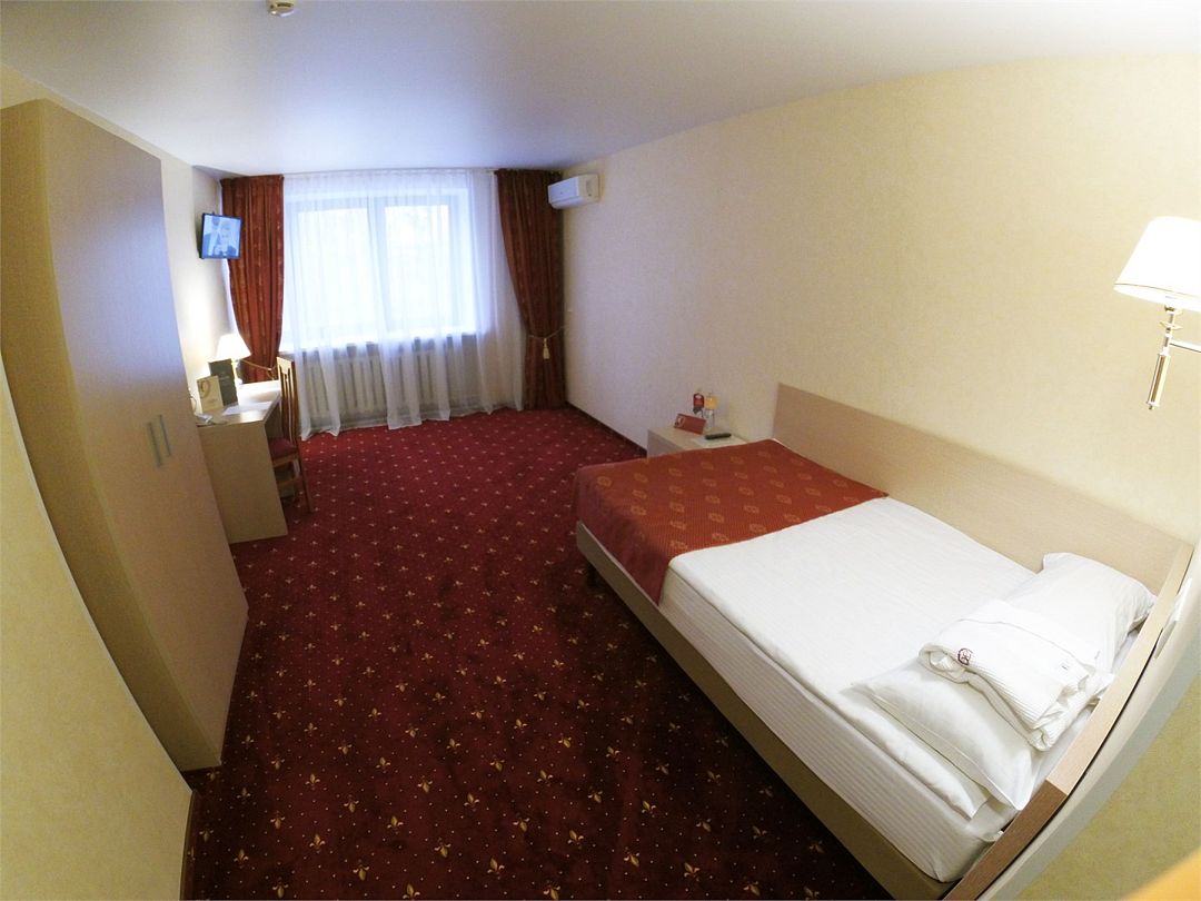 Комфортабельный номер, площадью 45 кв.м., двуспальная кровать, в некоторых номерах - зона с мягкой мебелью, телевизор, кондиционер, холодильник, телефон, сейф, Wi-Fi.Услуги и удобства