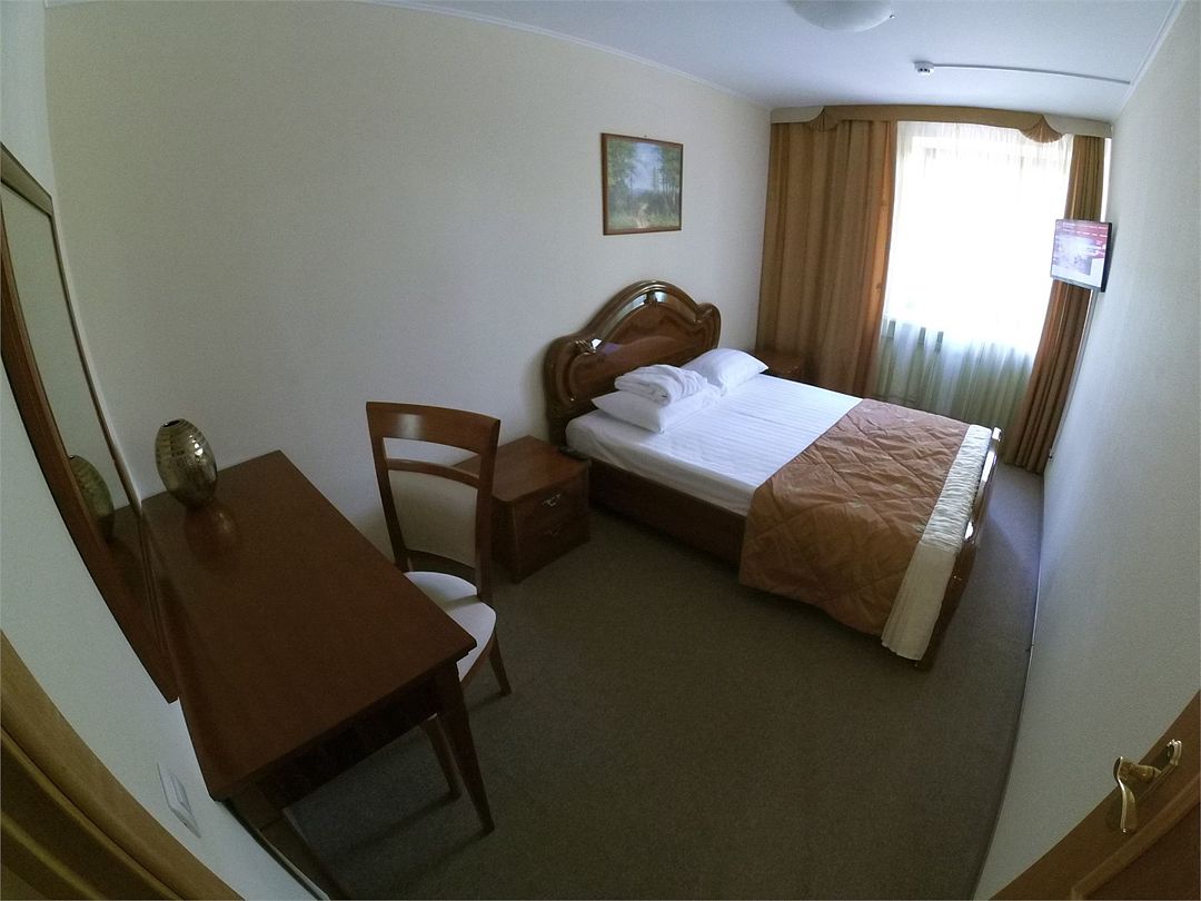 Однокомнатный номер, площадью до 26 кв. м., в номере двуспальная кровать, рабочая зона, в некоторых номерах раскладной диванУслуги и удобства