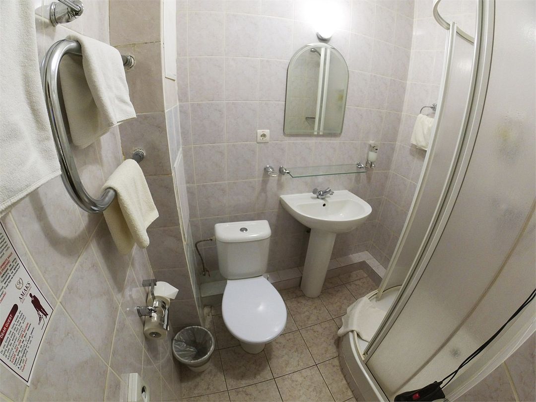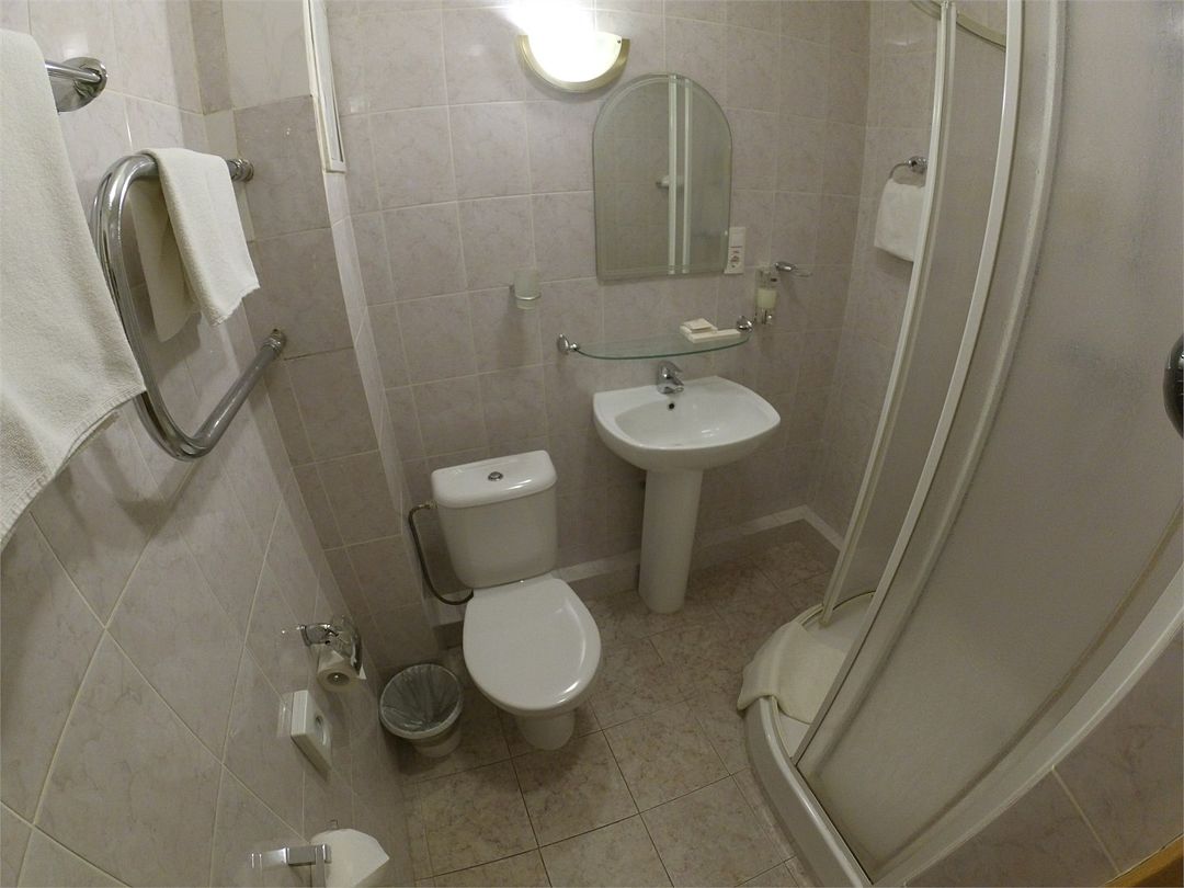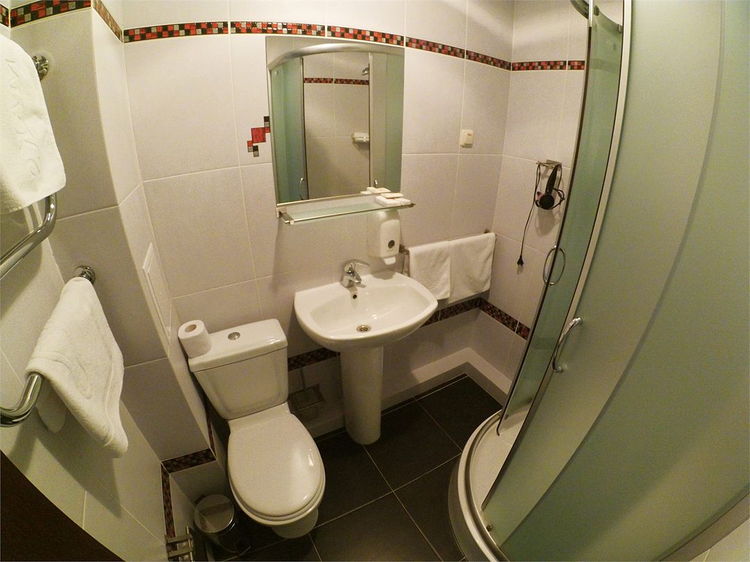 телевизор, кабельное телевидение, Wi-Fi, телефон, холодильник, кондиционер, светильник, настольные лампы, фен, электронные замки, душевая кабина, санузел, тапочки, полутораспальная кровать, стулья, шкаф для одежды, вешалки, письменный стол, багажная тумба, зеркало, обслуживание номеров, унитаз, ковровое покрытие, отопление, душ, вид на город, кулер на этаже, вид во двор, без питомцевВ гостиничном номере