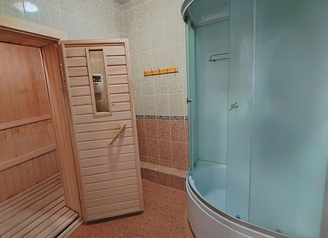 После парной можно отдохнуть в специальной зоне, где есть всё необходимое: мягкий диван и уютный гарнитур – деревянный стол и скамейки, 4 чайных пары, чайник электрический, 4 больших махровых полотенца.
