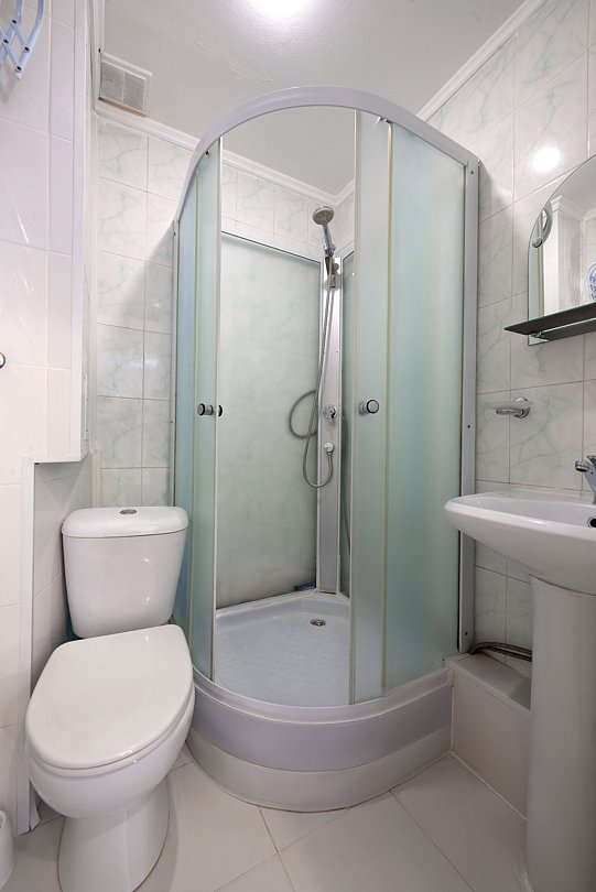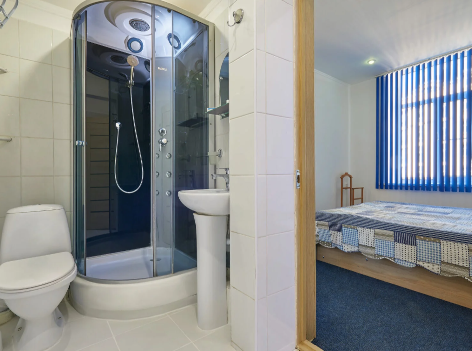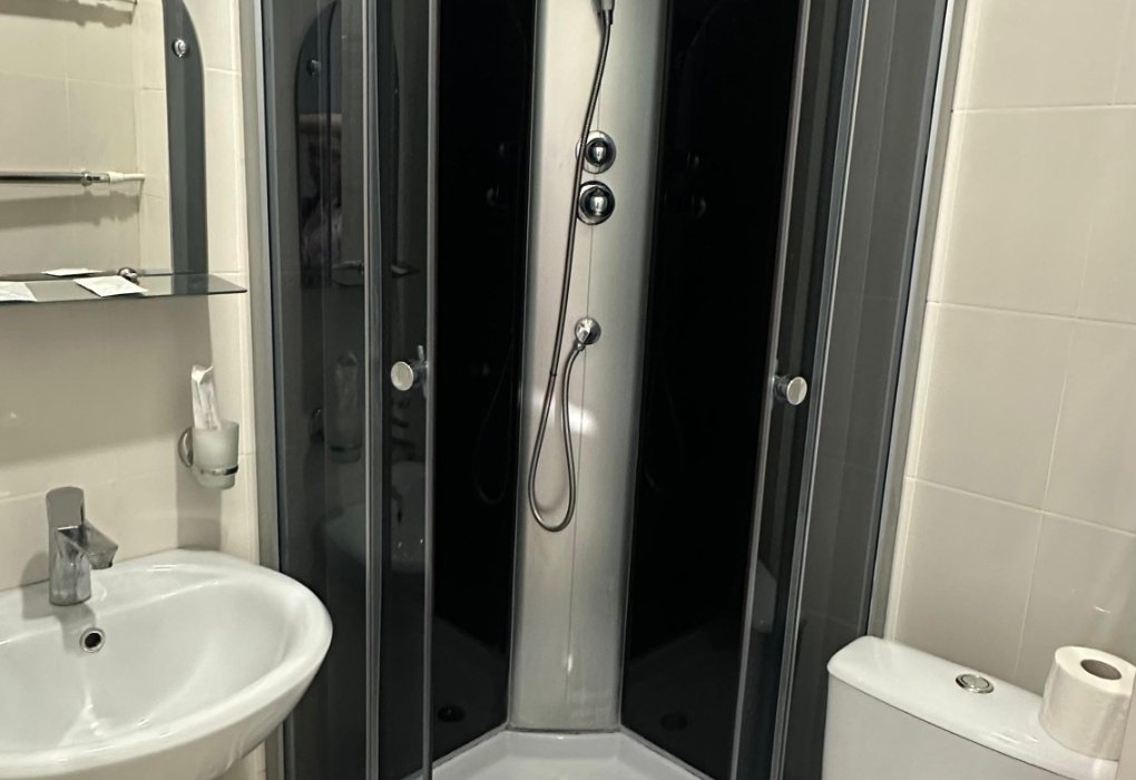 На тумбочке оторвана ручка, душевая кабинка плохая.