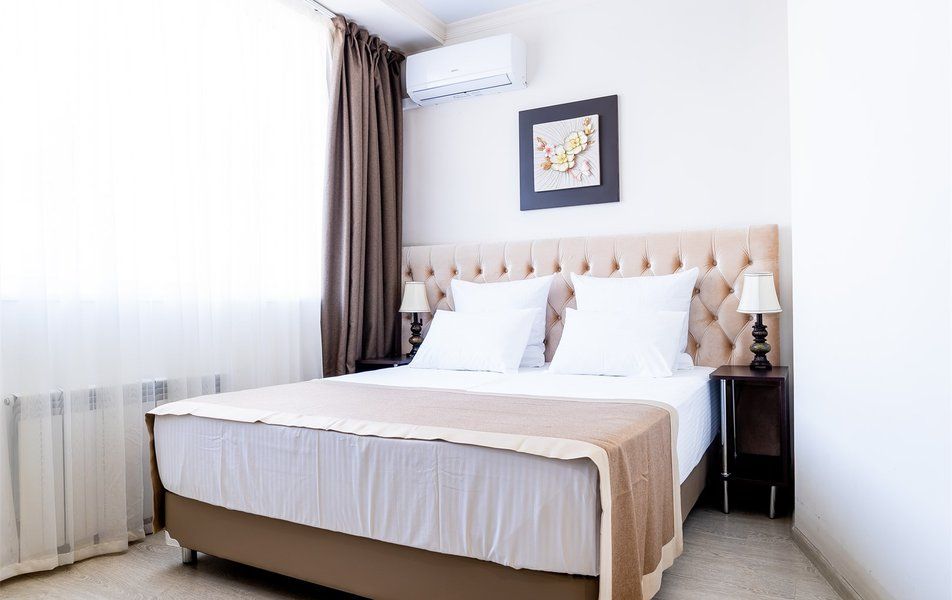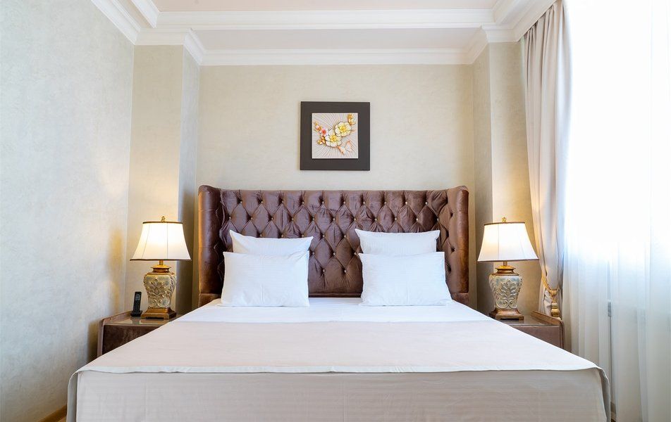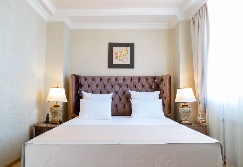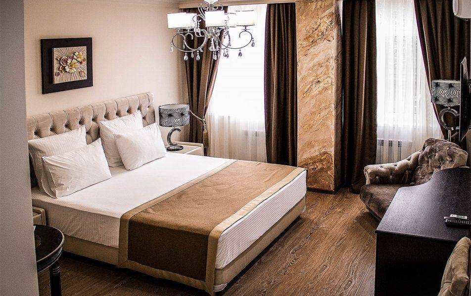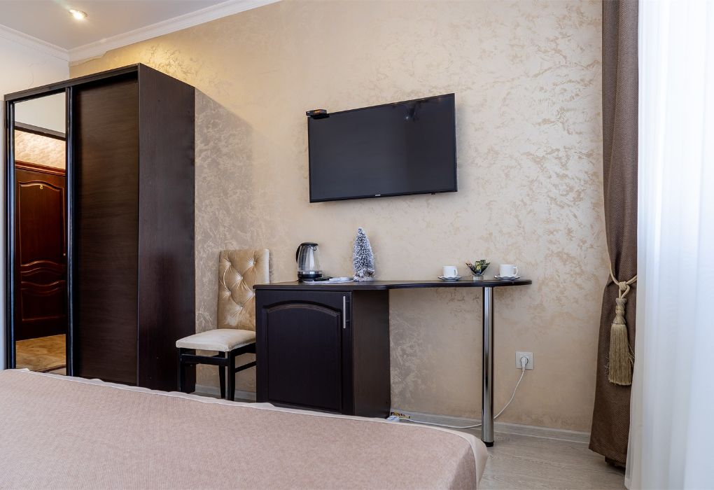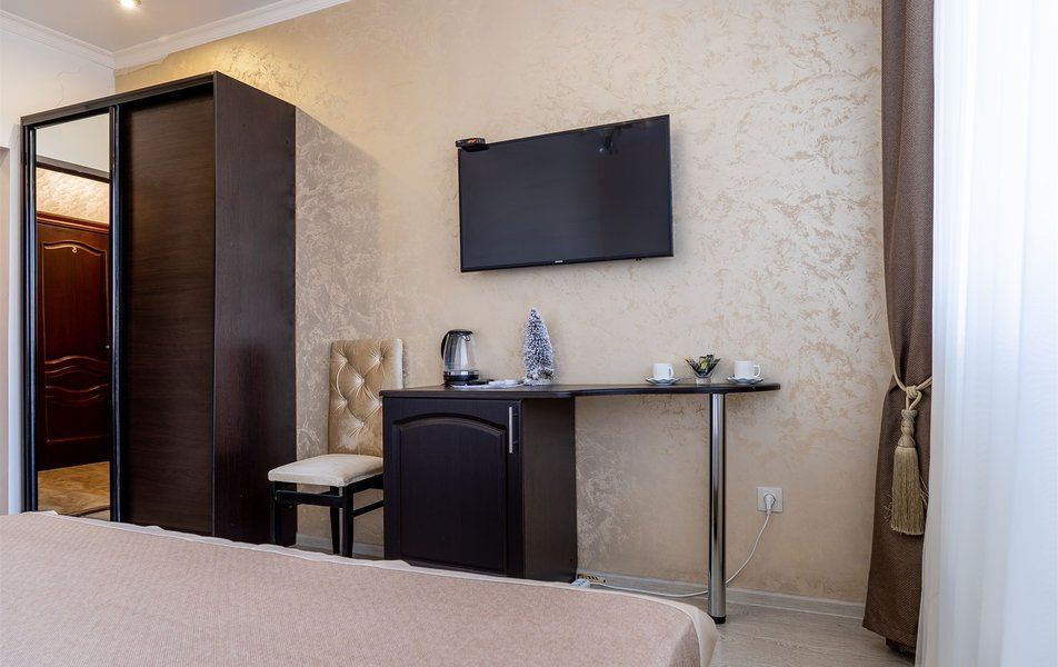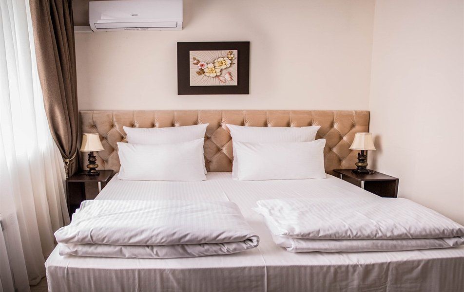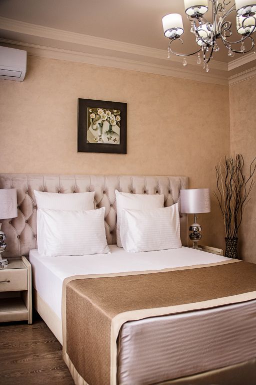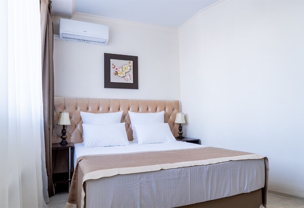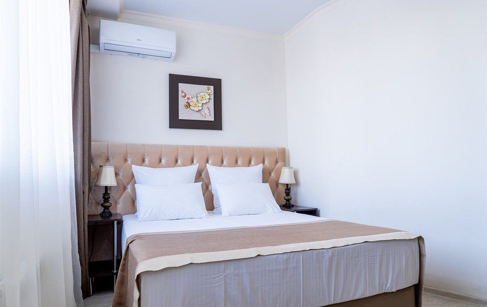 Двухэтажное здание отеля расположено в тихом жилой районе Кисловодска среди многоэтажной застройки. Небольшой жилой фонд предлагает отдыхающим номера Стандарт, Полулюкс и Люкс. В номерах классический интерьер, выдержанный в пастельных и пудровых оттенках. Все комнаты оснащены кондиционером, душем, есть телевизор и беспроводной интернет.