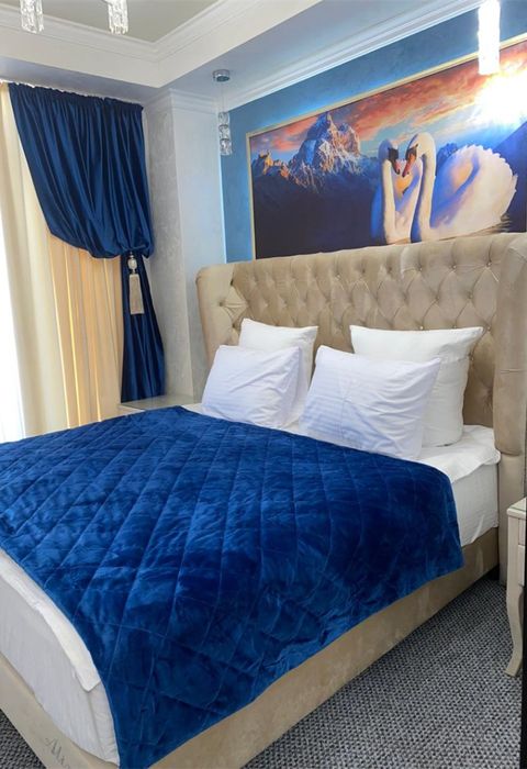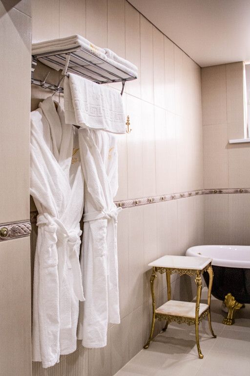 3 комнаты: спальня (с 2-спальной кроватью «King size»), детская (с двумя 1-спальными кроватями) и зал с диваном. В номере звуконепроницаемые стены и окнаУслуги и удобства