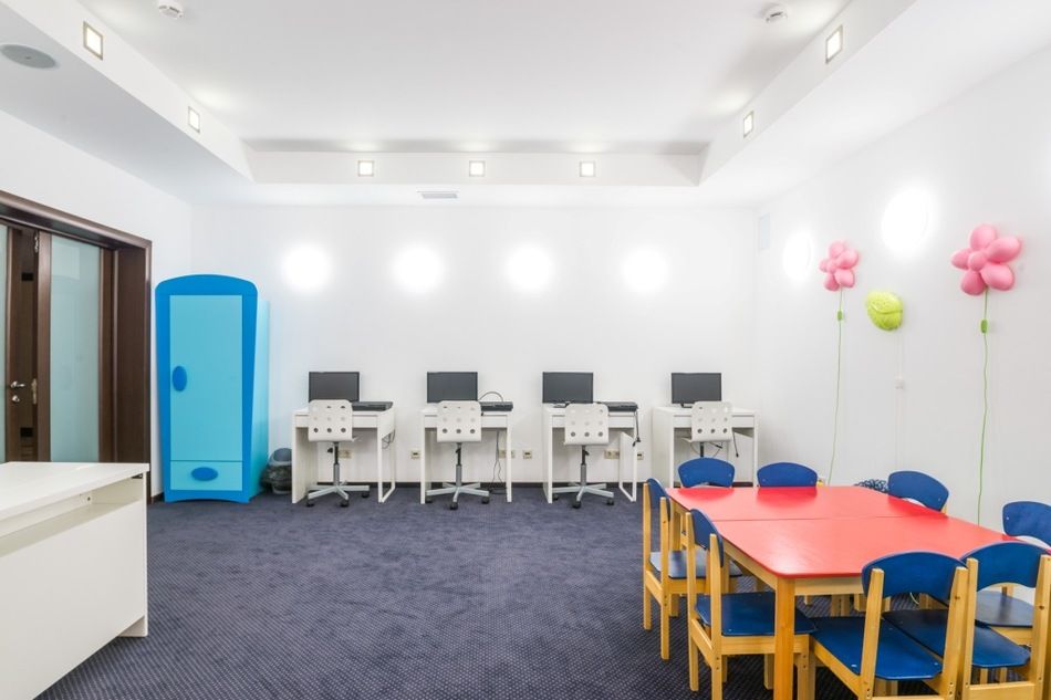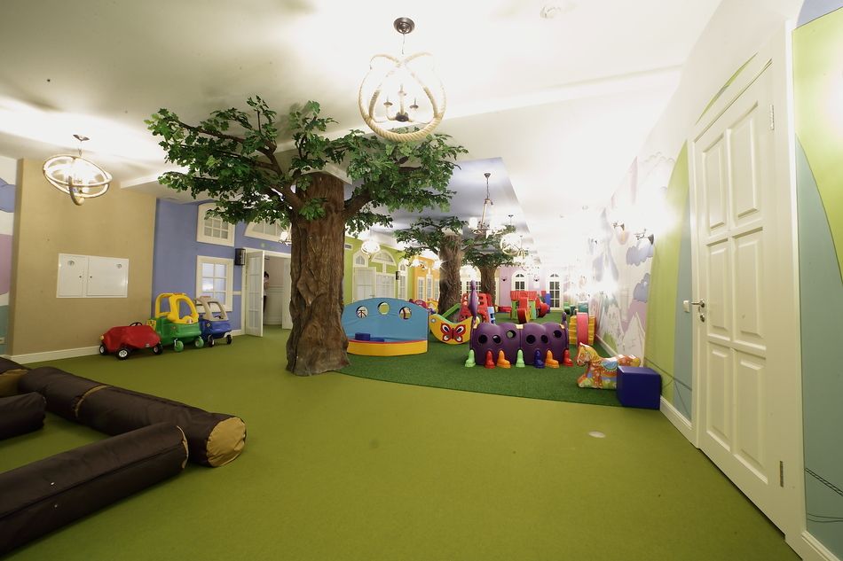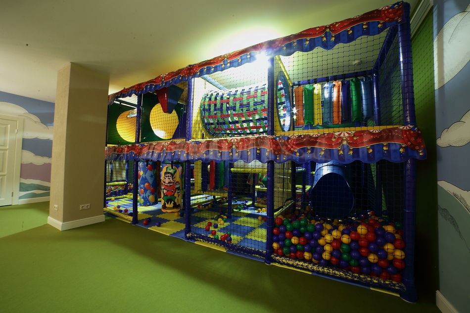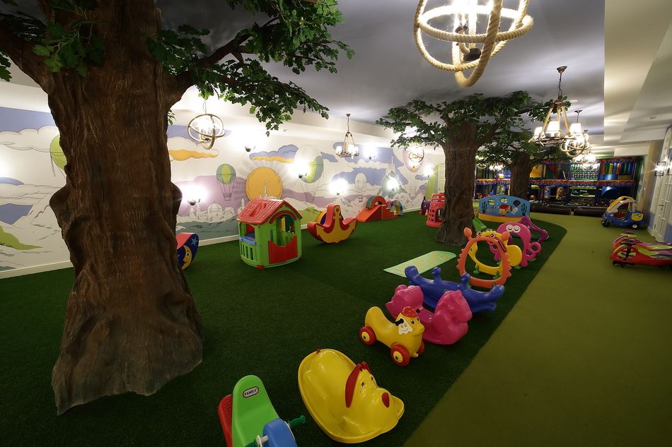 В детском развлекательном центре: кафетерий, отдельная игровая комната, ясельная игровая комната, кинотеатр, сухой бассейн и лабиринт.
