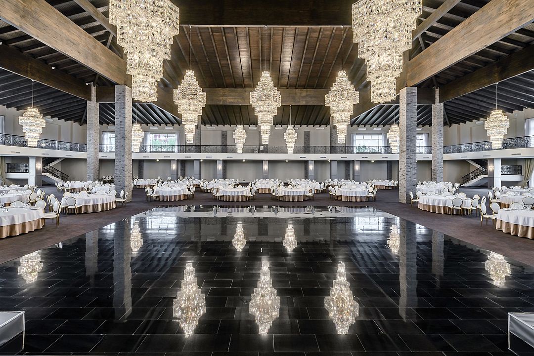 Банкетный зал имеет открытый бассейн и 2 мебелированные террасы. Второй этаж полностью предусмотрен под зону отдыха для гостей. При банкетном зале есть 3 конференц-зала. Встреча гостей торжества будет проходить в зоне ресепшен, у входа в банкетный зал.