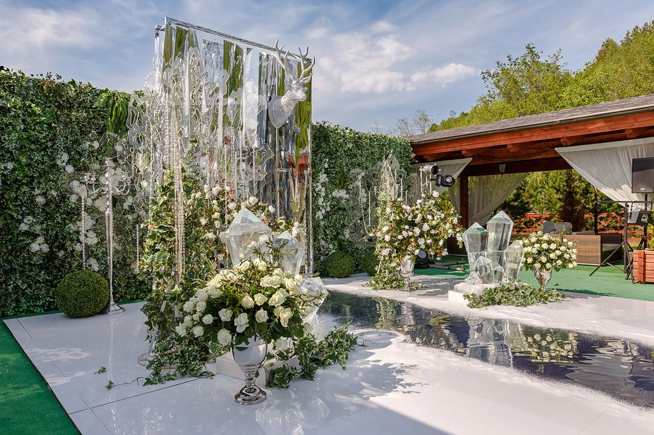 В летнее время года зал торжеств «Royal Hall» открывает своим гостям великолепную возможность — любоваться окружающей природой с открытой террасы, которая может быть оформлена в стиле Вашего торжества. Шатры и легкая плетеная мебель, мебель обеспечат Вашим гостям высочайший уровень комфорта. Открытый бассейн, расположенный на террасе зала, открывает новые возможности для реализации Ваших самых смелых идей.