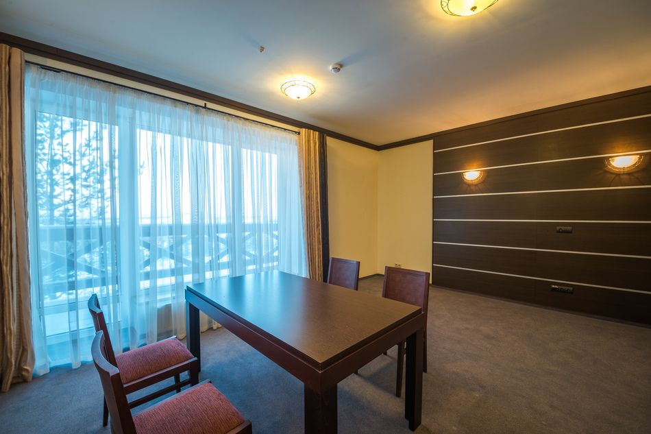Двухкомнатный номер повышенной комфортности с одной двуспальной кроватью и красивым видом из окна. Находится в конференц-крыле гостиницы.