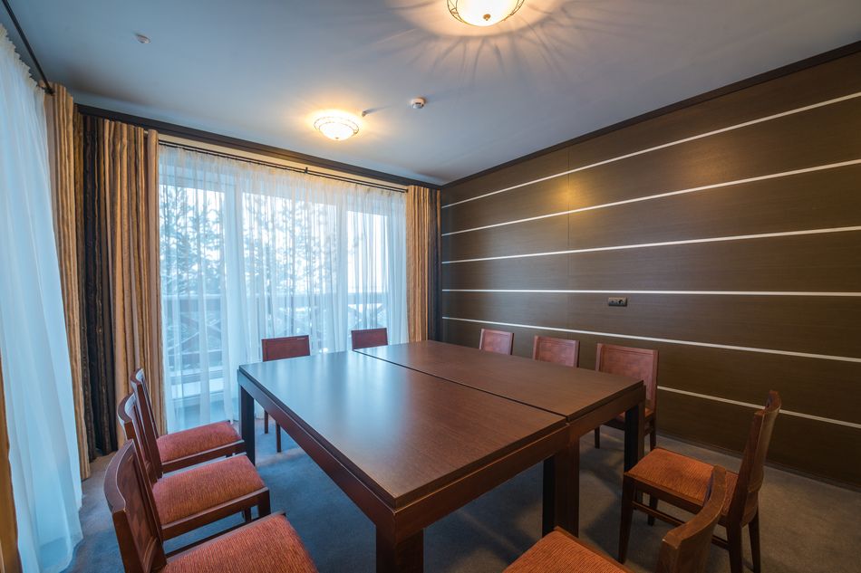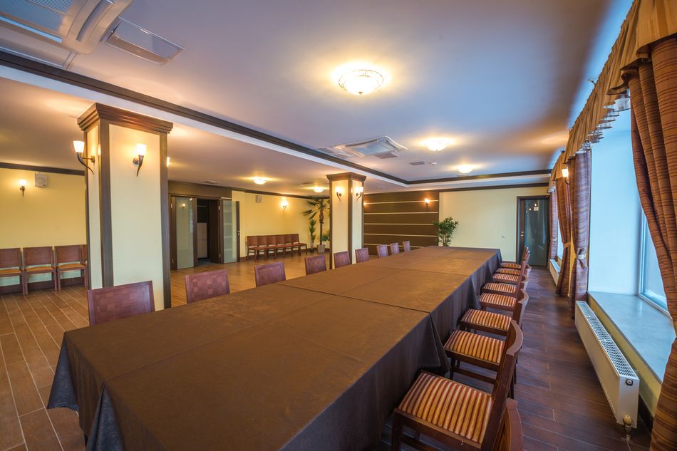 Дополнительно можно забронировать переговорные комнаты, которые расположены непосредственно рядом с большим конференц-залом. Вместимость переговорных комнат до 20 человек.