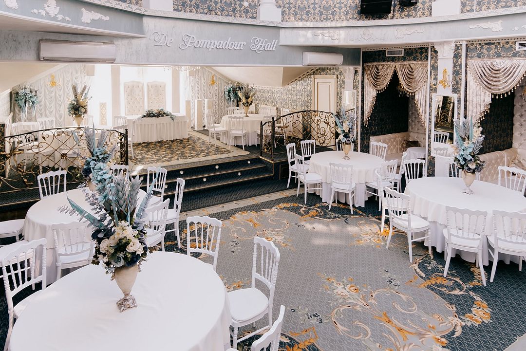 Изумительный зал в стиле Madame De Pompadour, стеклянный купольный потолок с подвесной люстрой. Этот зал пользуется особой популярностью из-за своих интерьеров.