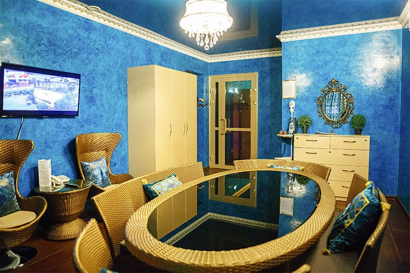 В стоимость включены все необходимые принадлежности (тапочки, простыни и полотенца, шампунь, мыло, питьевая вода). Гости могут сделать заказ из ресторана и продолжить свой отдых в просторной гостиной сауны, рассчитанной на компанию до 10 персон.