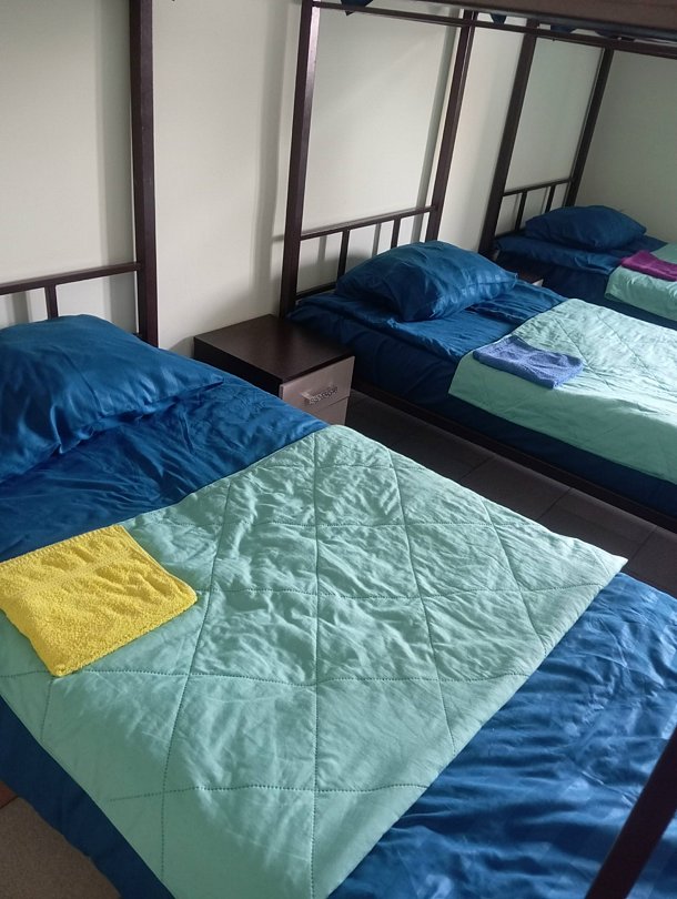 Для семейных пар доступен номер с двуспальной кроватью и чайником. Есть отдельные места в 3- и 12-местных номерах. В 12-местном номере установлены двухъярусные кровати, в 3-местном — три односпальные. Постельное бельё и полотенца предоставляются.
