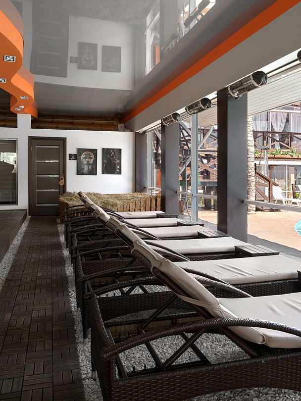 Тропическая сауна — Санариум — это идеально место для совместного отдыха в компании до 15 человек. У вас будет отдельное помещение с комнатой отдыха, парной и прямым выходом к уличным бассейнам с подогревом.В стоимость включены: