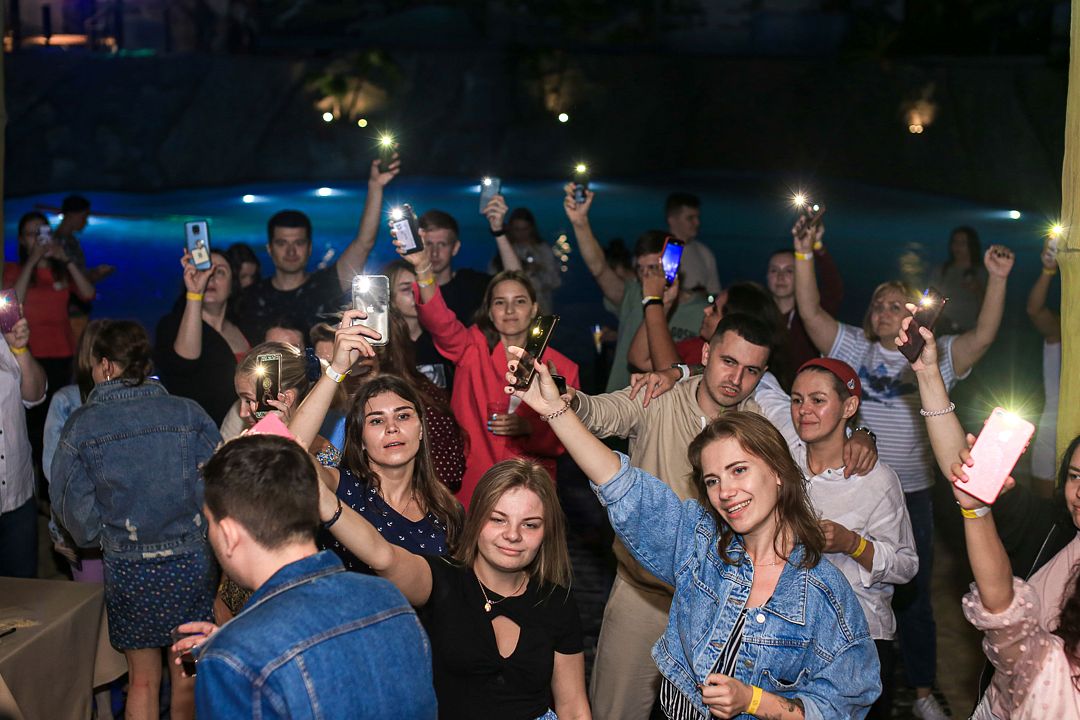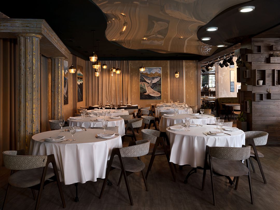- в зале ресторана, вместимостью до 90 человек. Площадка оборудована проектором, большим экраном, микрофонами, объемным звуком, сценой;