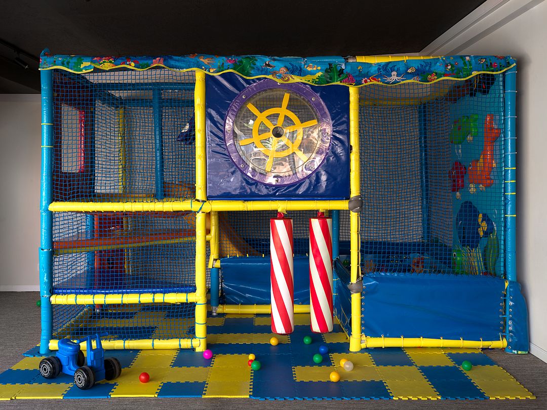 Это уникальная площадка для творчества, веселых игр, занимательных мастер–классов и зажигательных детских дискотек. А лабиринт позволит вашим деткам вдоволь нарезвиться.