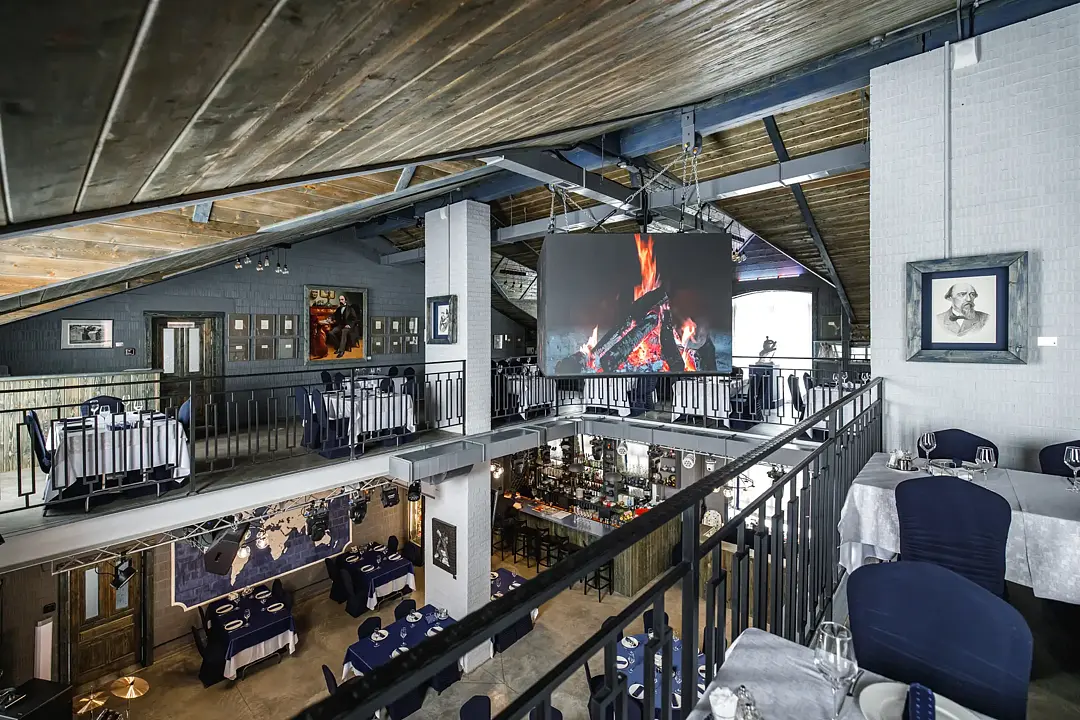 Зал вмещает до 250 гостей и идеально подходит как для проведения деловых, так и банкетных мероприятий Зал оснащен проектором и экраном, звуковом оборудованием и имеет дневной свет.