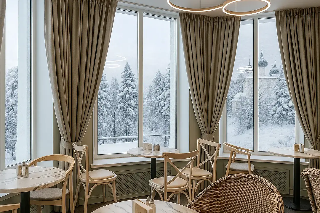 Новогодний банкет, состоится в новом белоснежном шатре «Ярманка» — месте, наполненном атмосферой изысканности и уюта. Этот уникальный уголок станет идеальным фоном для встречи Нового года.