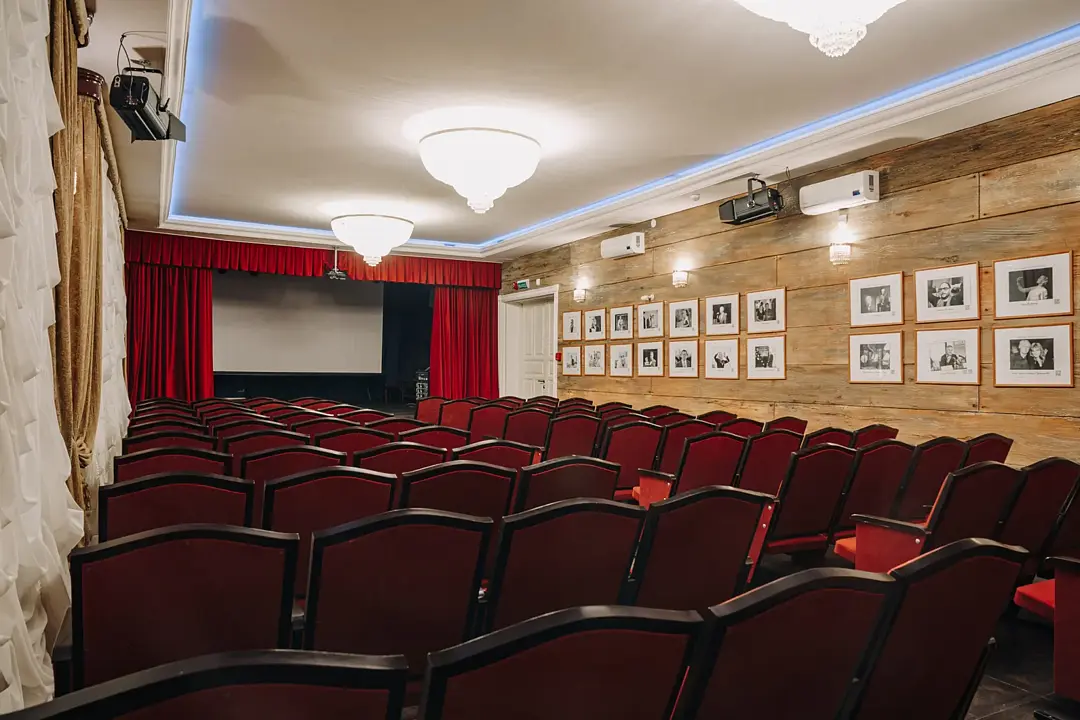 Читать полностьюИнтерьер зала выполнен в театральном стиле. Зал оснащен сценой и техническим оборудованием. Подойдет для проведения семинаров, презентаций и спикерских выступлений. Вместимость до 100 гостей.