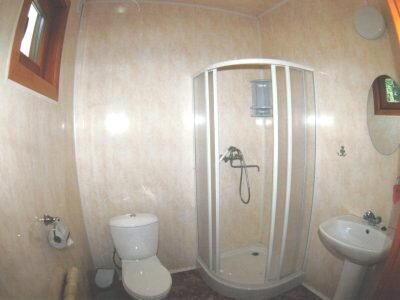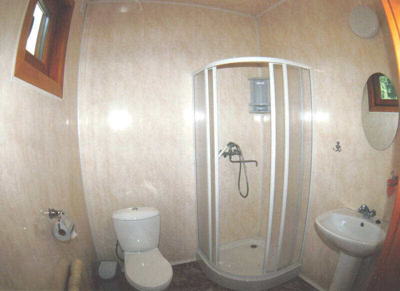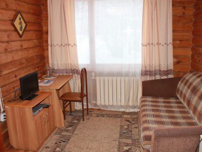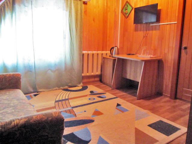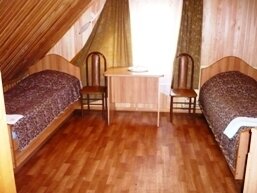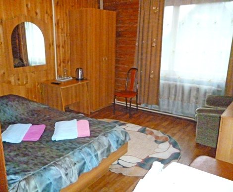 В № 1;2;3;4;5;6. – двуспальная и односпальная кровати с пружинными матрасами, в № 7;8;9;10 – три односпальные кровати. Во всех номерах – вешалка для верхней одежды, зеркало, стол, подставка для обуви. Удобства на улице. Душевая общего пользования.