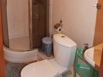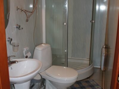 В номере есть двуспальная кровать, кресло-кровать, комод, стулья, сан.узел в номере (душ, раковина, туалет).