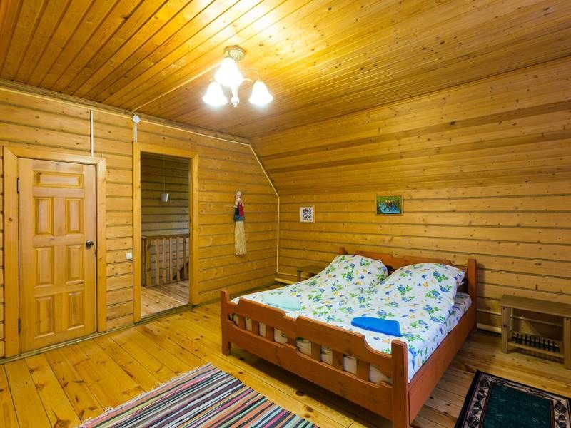 Просторный зал, 2-х комнатный номер (верхний этаж - спальня с раскладным диваном в мансарде), санузел в каждой комнате.
