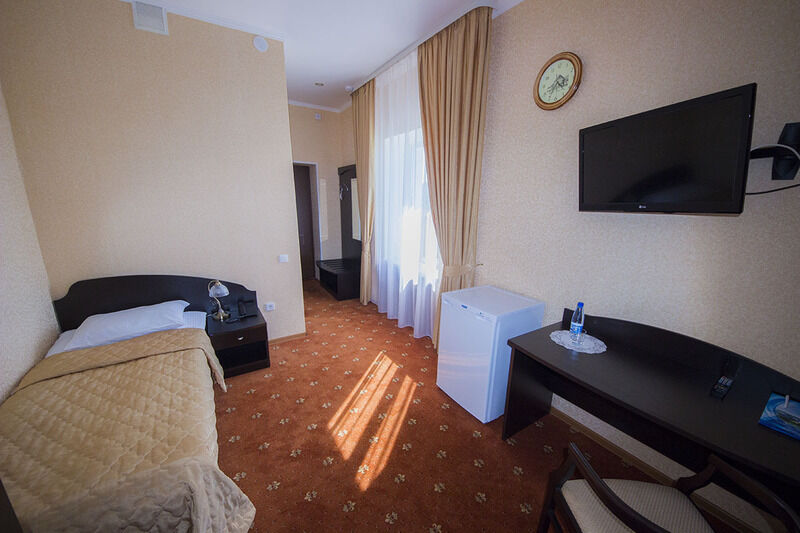 29 кв.м, двуспальная кровать, кресло-кровать, шкаф, прикроватная тумбочка, сейф, с/у с душем, ТВ, мини-холодильник, столик с необходимым набором посуды, чайник.