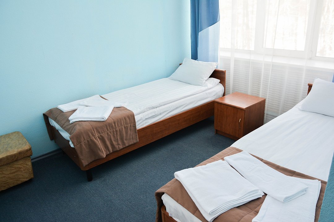 Небольшой номер, состоящий из одной жилой комнаты с двумя односпальными кроватями, ванная комната в блоке из двух номеров. Расположение: Корпус Саяны.