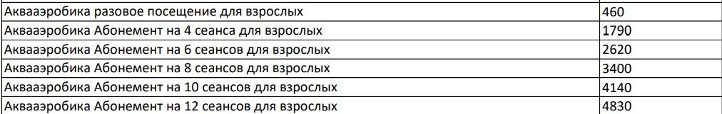 - посещение плавательного бассейна (1 сеанс в сутки);