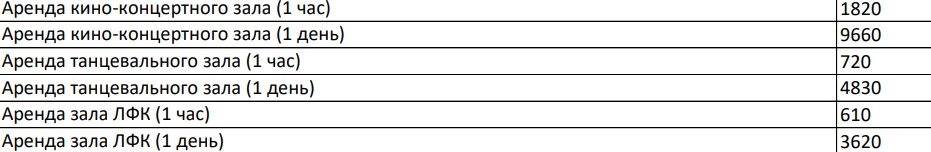 - прокат велосипеда (детский) (4 часа) — 390 ₽;