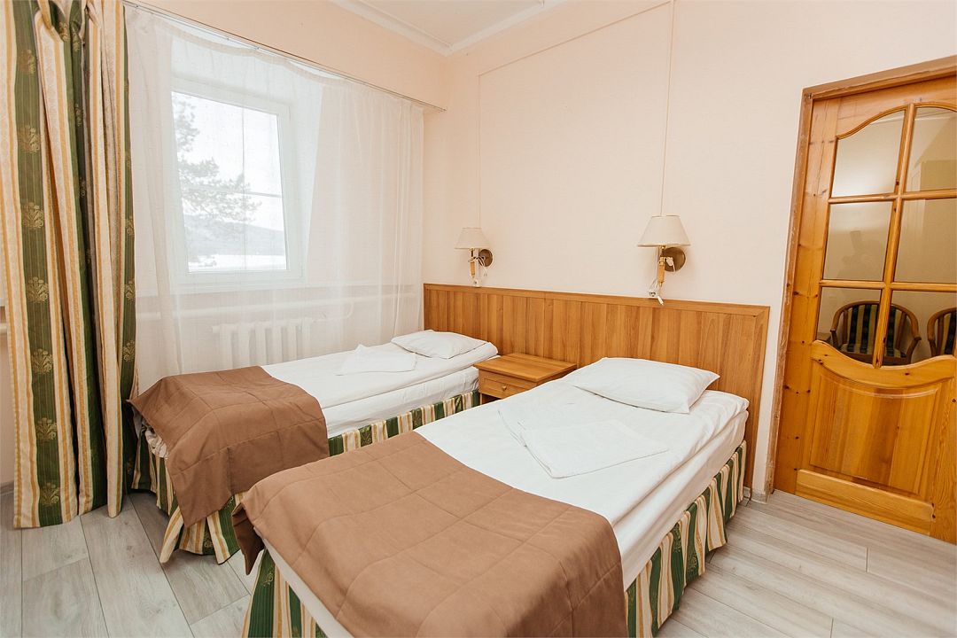 Короткий отпуск с друзьямиХорошее место для размещения желающих побывать на БайкалеРазмещались на курорте в рамках путешествия в Бурятию. Номер отремонтирован, практически 2 комнаты, хорошая мебель, есть набор для чая и немного посуды, неплохой санузел. Сосновый бор дает потрясающий запах, хвойный аромат усыплял просто на раз. До Байкала 800 м, выходишь сразу на песчаный пляж, у нас было ощущение моря. Питание - санаторное, все съедобно, но не всегда вкусно. Ходили в бассейн посидеть в воде с источника, прекрасно расслабляет. Про лечение сказать ничего не могу.