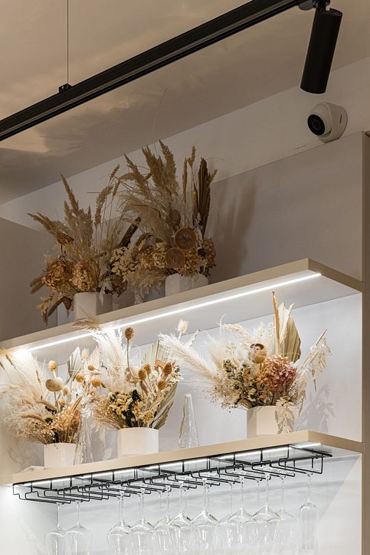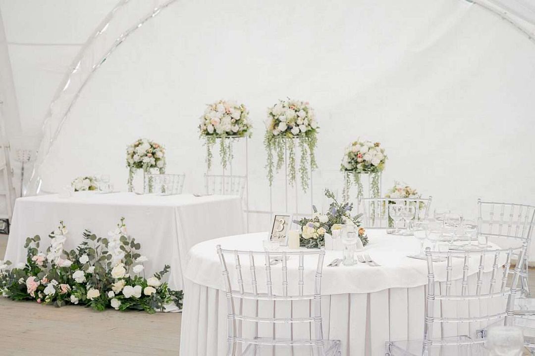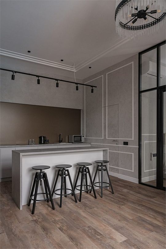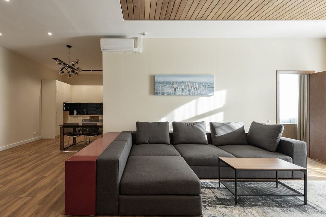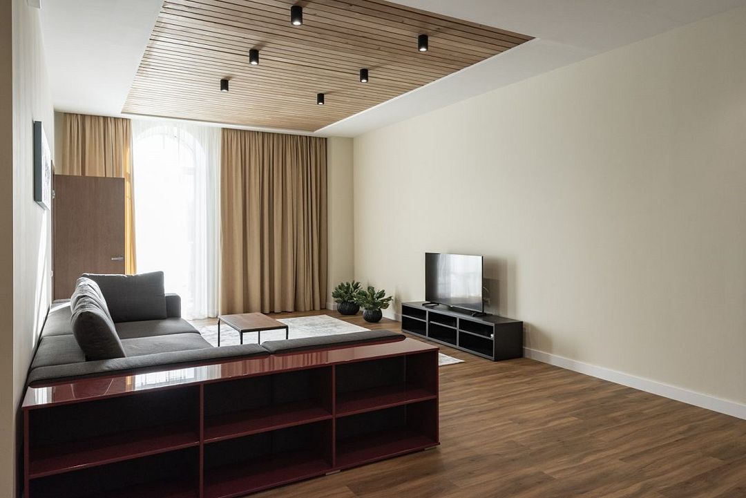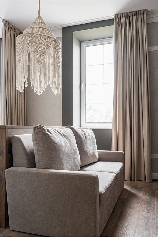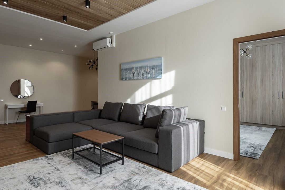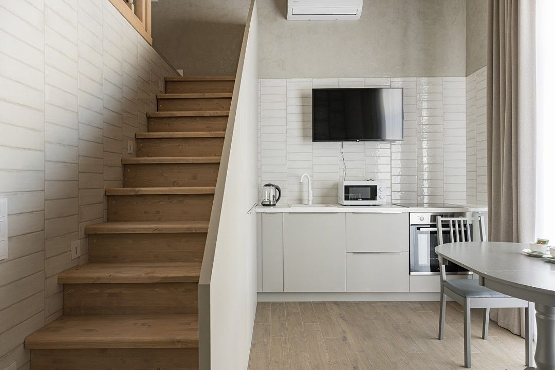 Простота и утонченность интерьера не требуют дополнительных декораций, панорамные окна наполняют зал светом и воздухом, а балкон с потрясающим видом на лес станет отличной площадкой для уникальных фотографий.