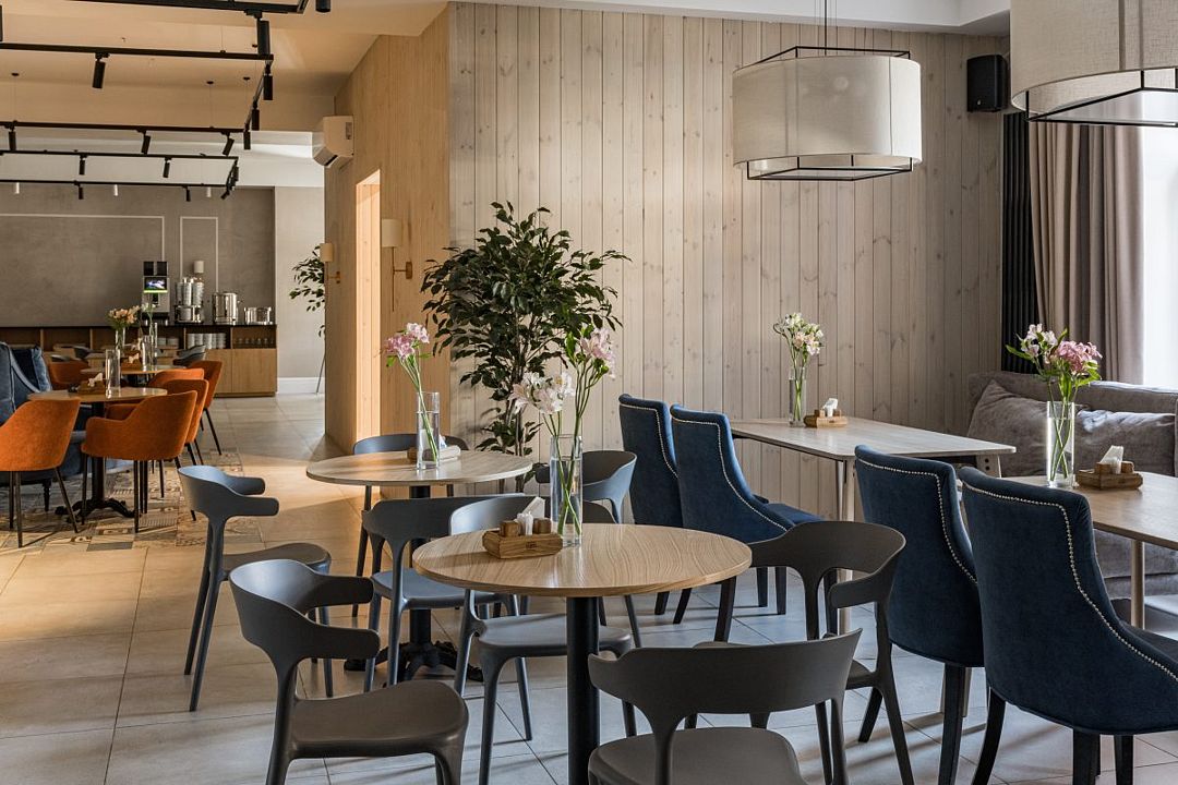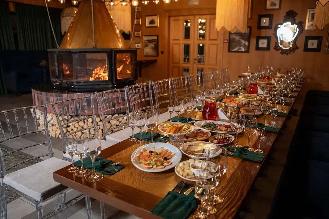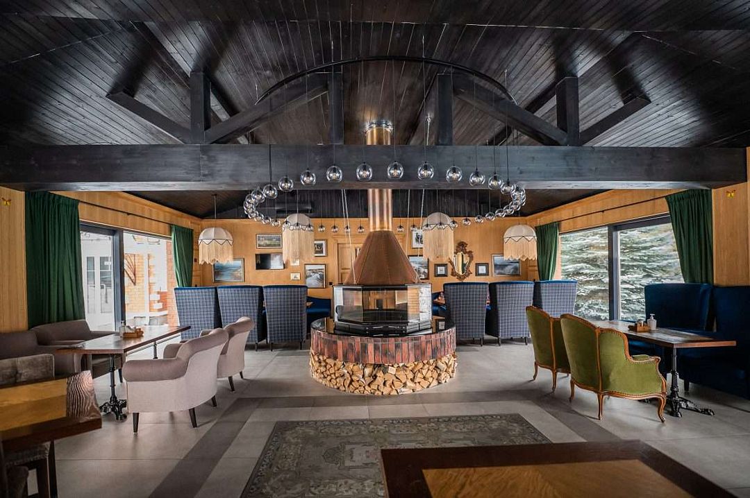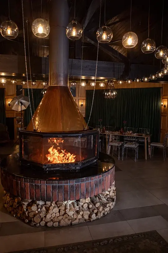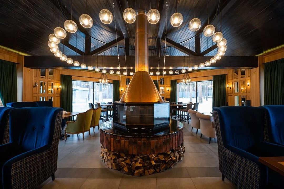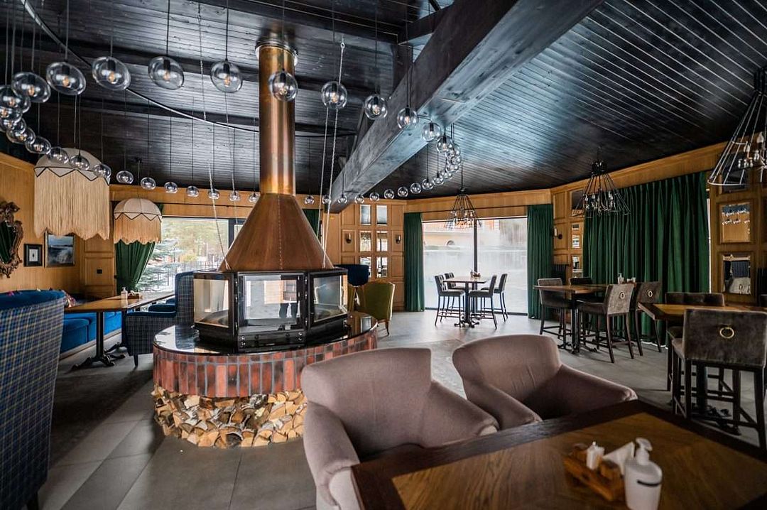 Каминный зала в ресторане Baden Gourmet (это пристрой к зданию ресторана с панорамным видом на бассейны). Уютный и стильный интерьер зала с камином и живым огнём не оставит вас равнодушными. Зал прекрасно подходит для небольших семейных праздников. Часы работы ежедневно с 9:00 до 23:00, кухня до 22:00.