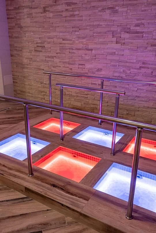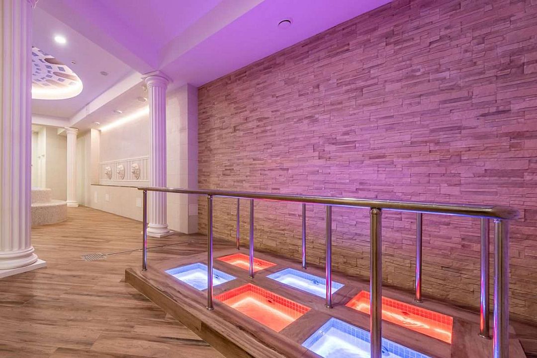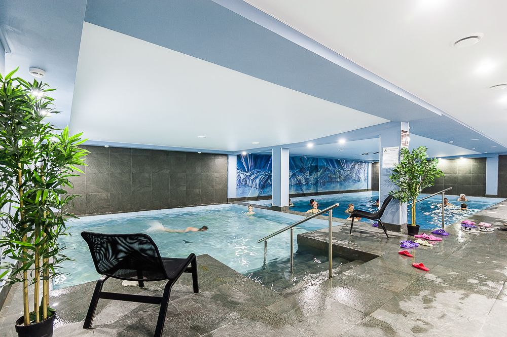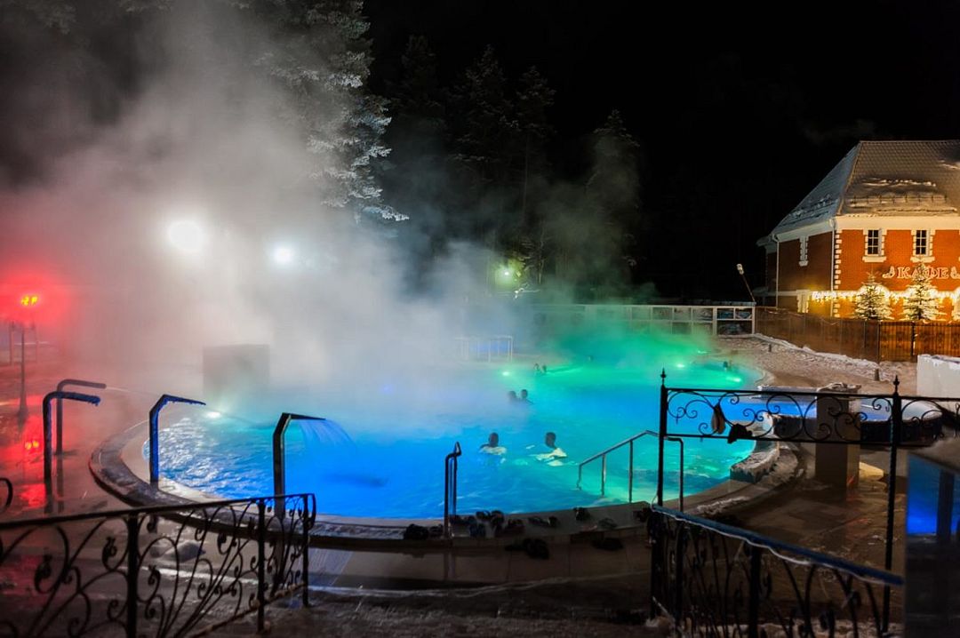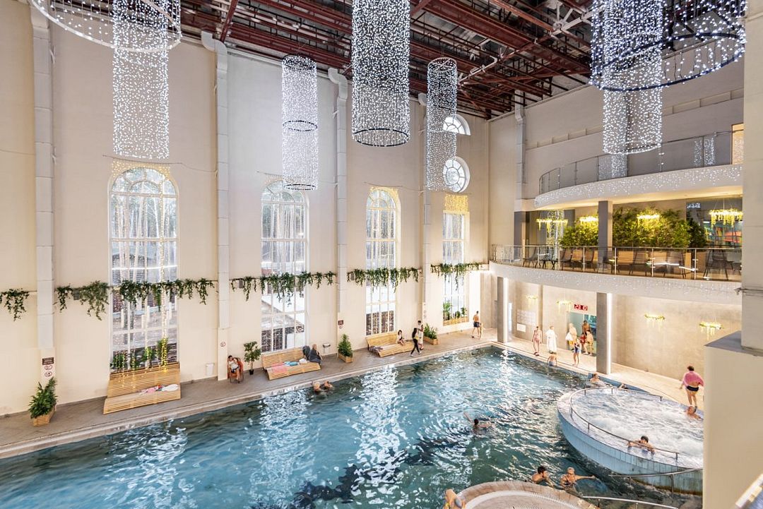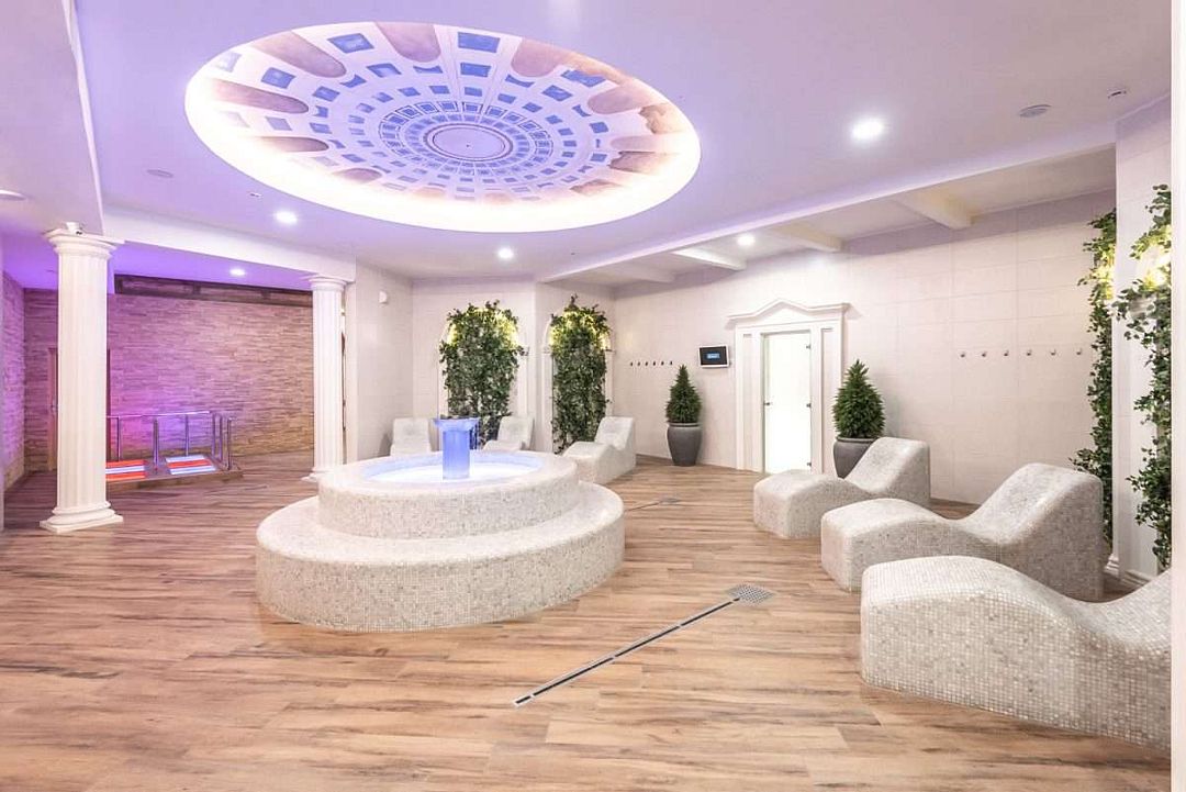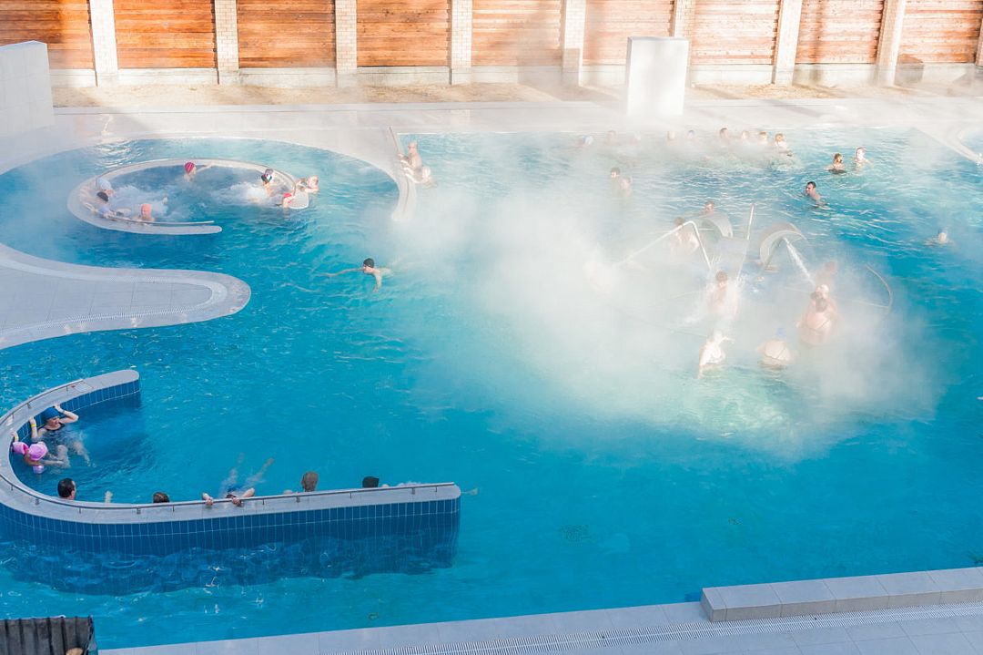 Термальный комплекс включает в себя несколько открытых и закрытых бассейнов, банный комплекс народов мира с четырьмя — Россия, Средиземноморье, Германия и Восток, сауну, купель и зоны отдыха. Предоставляются SPA-услуги, которые благоприятно скажутся на Вашем здоровье: парение, массажи, и обертывания. Есть соляная комната.