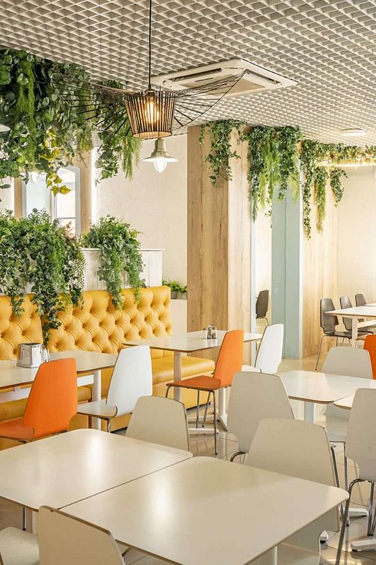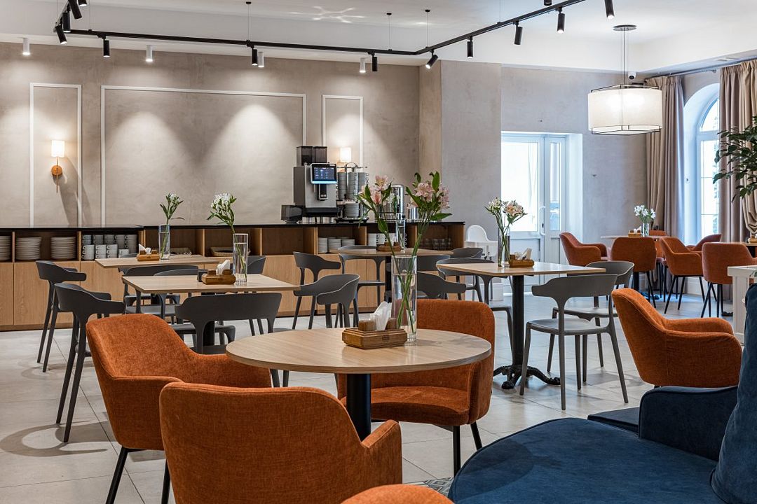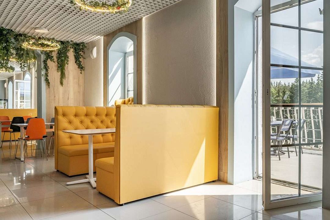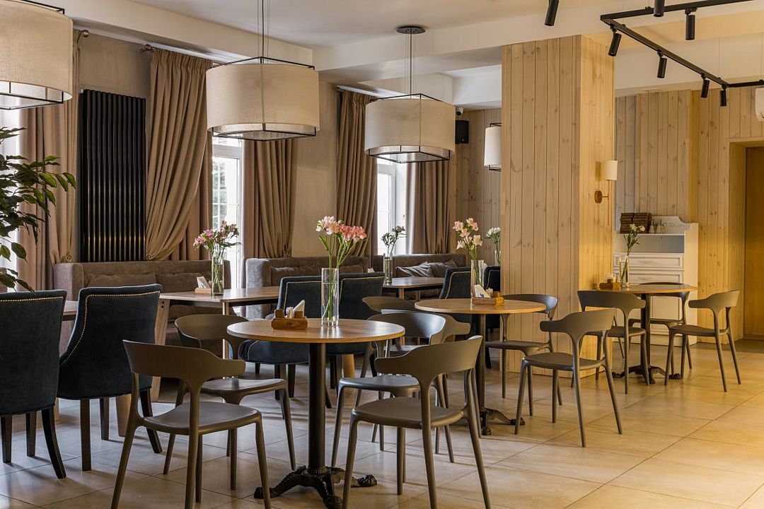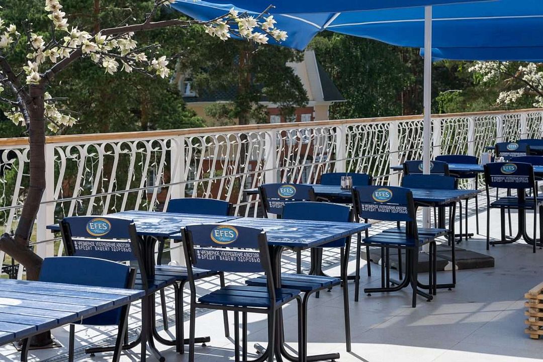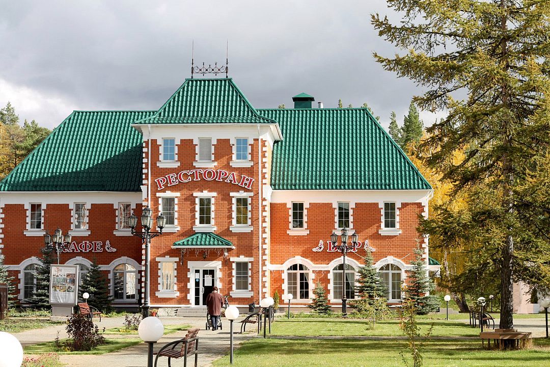 На территории также есть ресторан и кафе, в которых можно вкусно поесть или арендовать банкетные залы для проведения любого тожества.