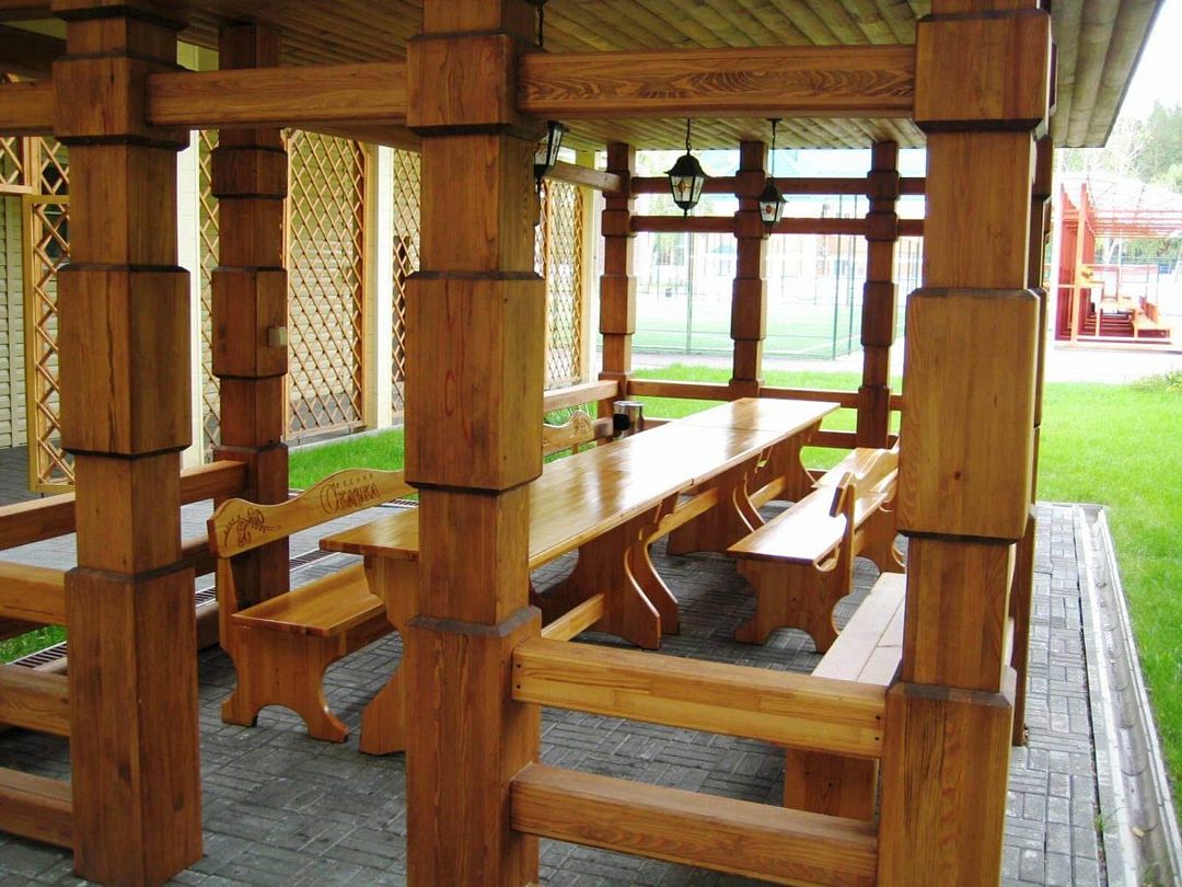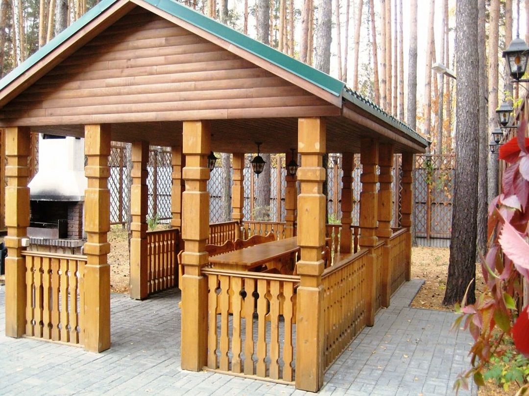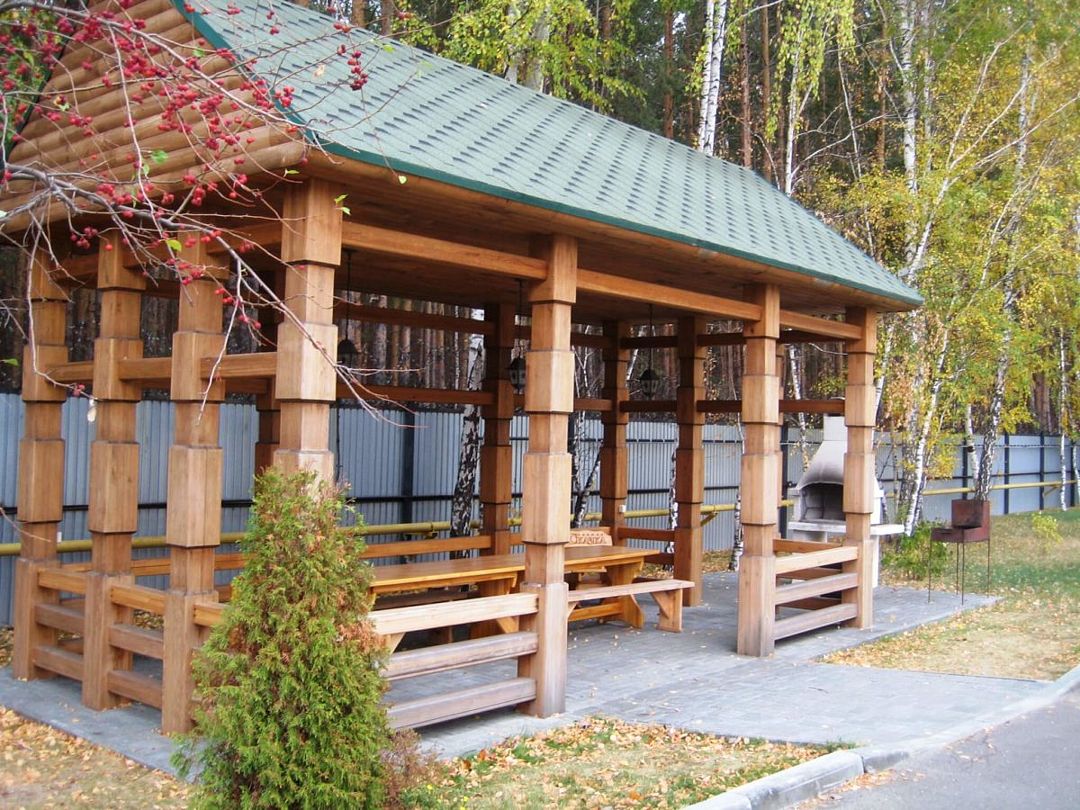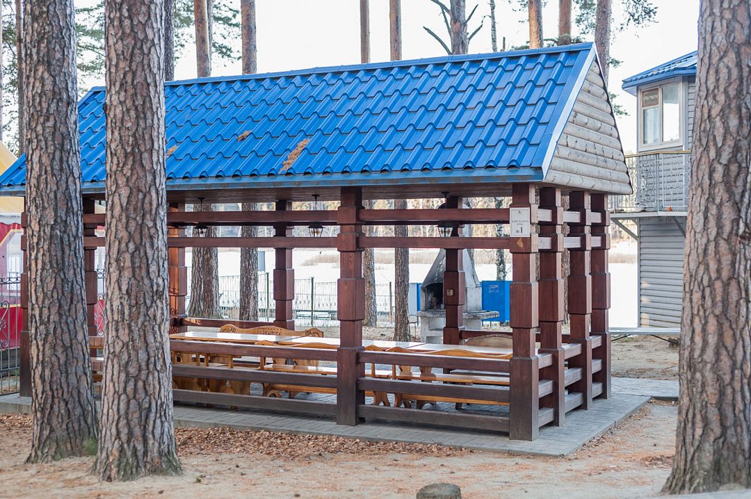 В живописной лесной зоне расположены несколько площадок для пикника с беседками на разное количество человек.