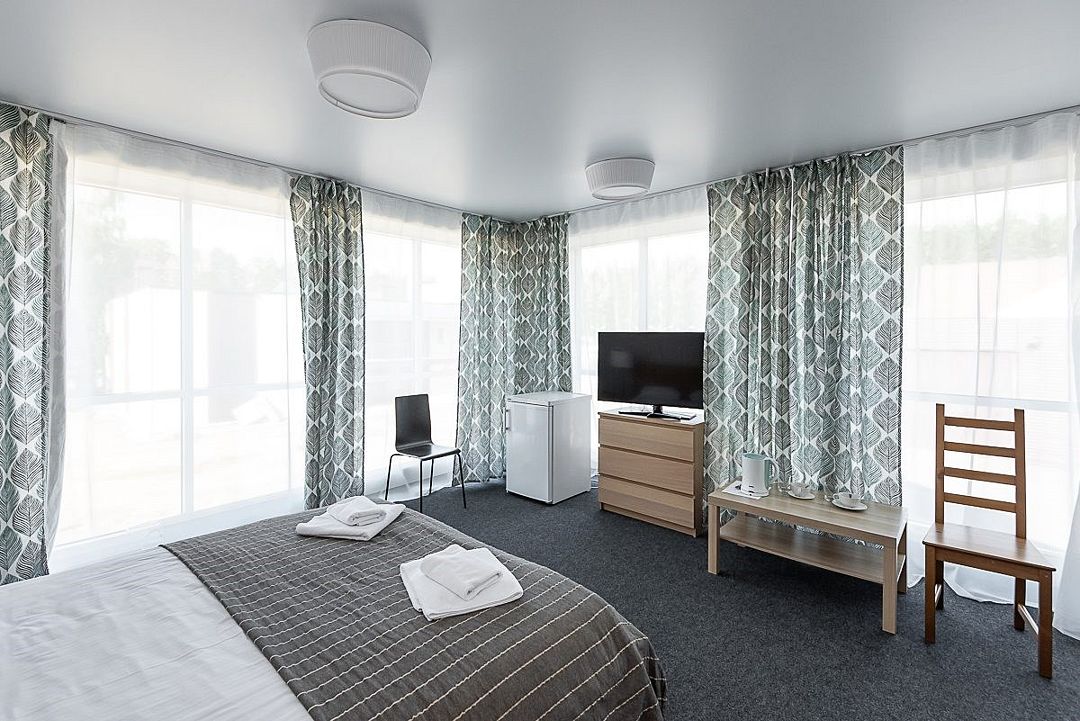 Гостиничный комплекс представляет предлагает разнообразные варианты размещения — от простых номеров с базовым уровнем удобств до роскошных апартаментов с собственной кухней, домов-контейнеров и коттеджей.