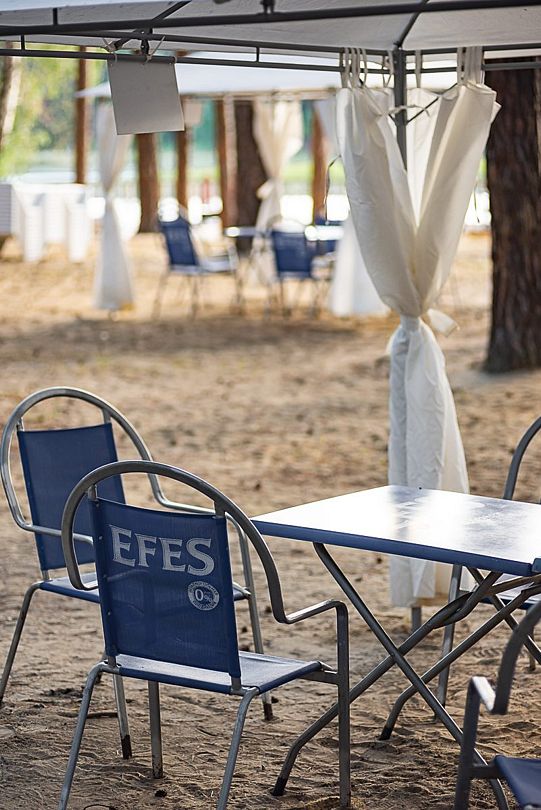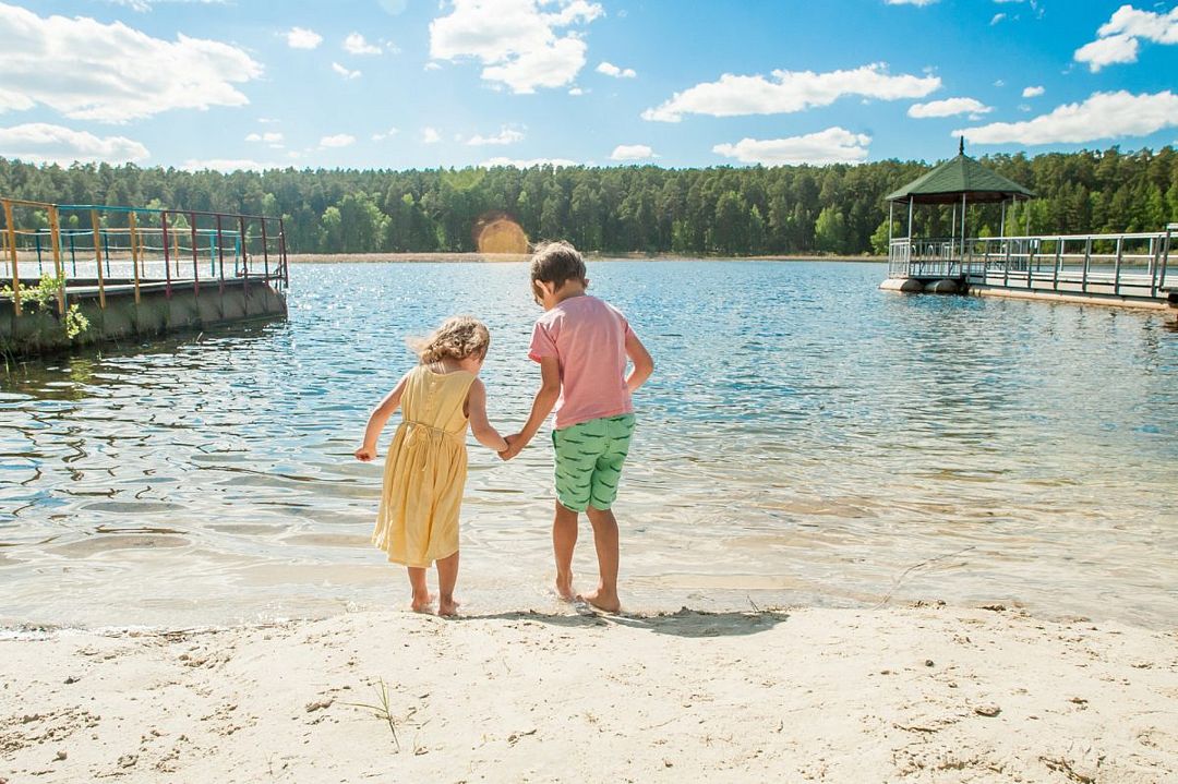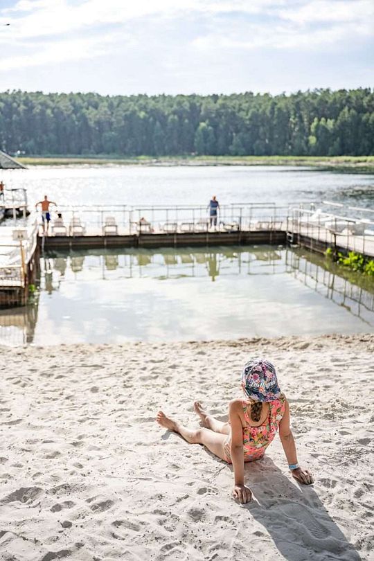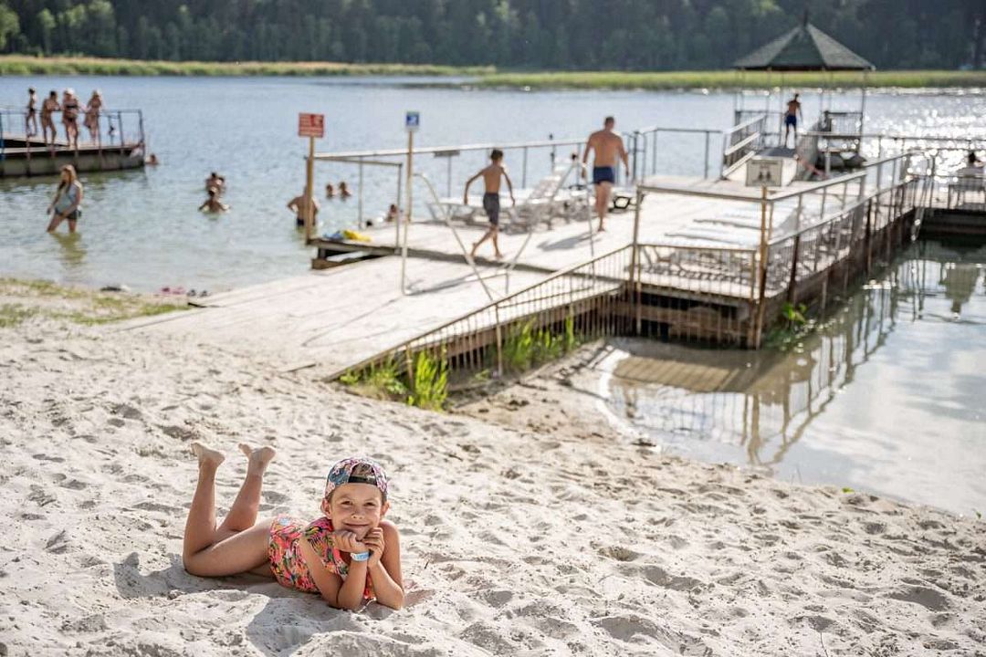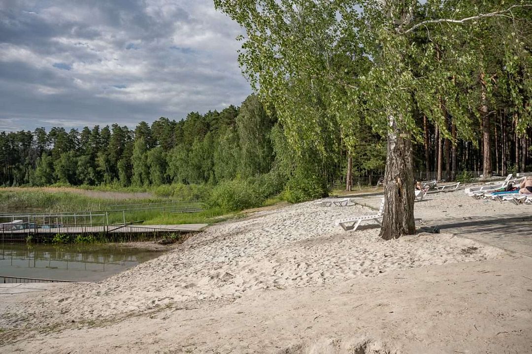 В теплое время года на берегу озера открыт пляж, где гости могут не только искупаться, но воспользоваться лежаками, раздевалками, биотуалетами, понтонами, площадкой для пляжного волейбола.