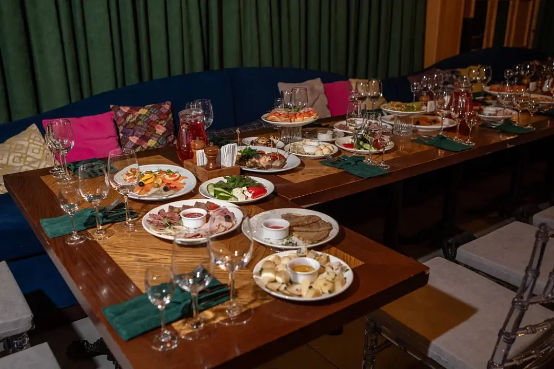 - комплексный обед и/или ужин — 750 ₽ / человек без сервисного сбора.