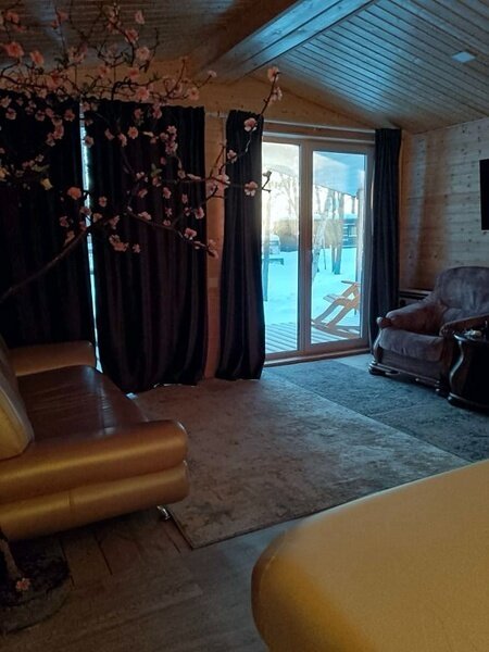 двуспальная кровать, диван, кухня (Х, плита), ТВ, с/ душ, терраса с мебелью